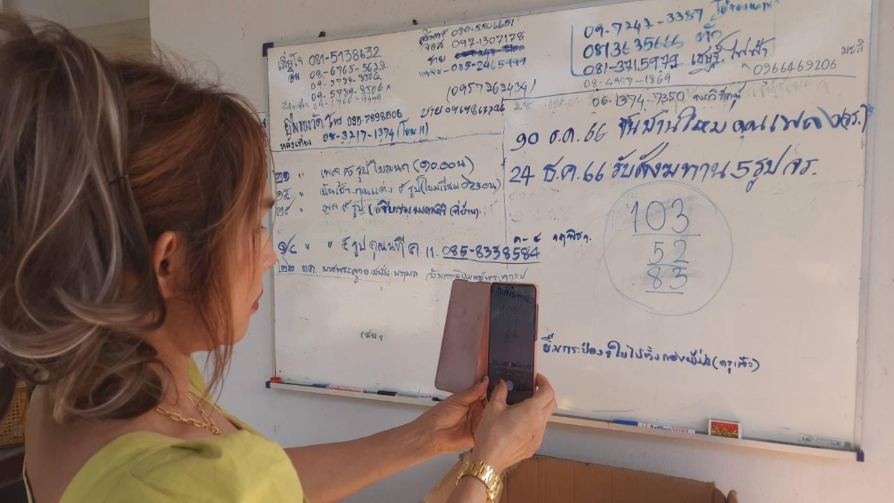 ทั้งนี้ พบ นางวราณิษฐ์ จิราวัฒน์สินทร ชาวนิมิตใหม่ กรุงเทพฯ เดินทางมาถวายสังฆทานกับพระครูสุจิตรัตนากร เจ้าคณะอำเภอหนองเสือ เจ้าอาวาสวัดบึงบาประภาสะวัต ก่อนกลับได้แวะดูเลขเด็ดที่บอร์ดกิจของสงฆ์ พร้อมกับกล่าวว่า ตนเองนั้นถูกติดต่อกันมา 3 งวดแล้ว วันก่อนหวยออกตนเองจะแวะมาส่องดูบอร์ดแห่งนี้ ซึ่งงวดนี้ก็มีเลขตรงกับใจพอดี ตนจึงนำน้ำแดงมะนาวมาถวายพระเวลามีการสวดปาฏิโมกข์ทุกวันพระ และจะนับจำนวนพระสงฆ์ที่มาร่วมพิธี และงวดนี้ก็ได้เลข 103 52 83 จากบอร์ดนี้ จะนำกลับไปเสี่ยงโชคอย่างแน่นอน