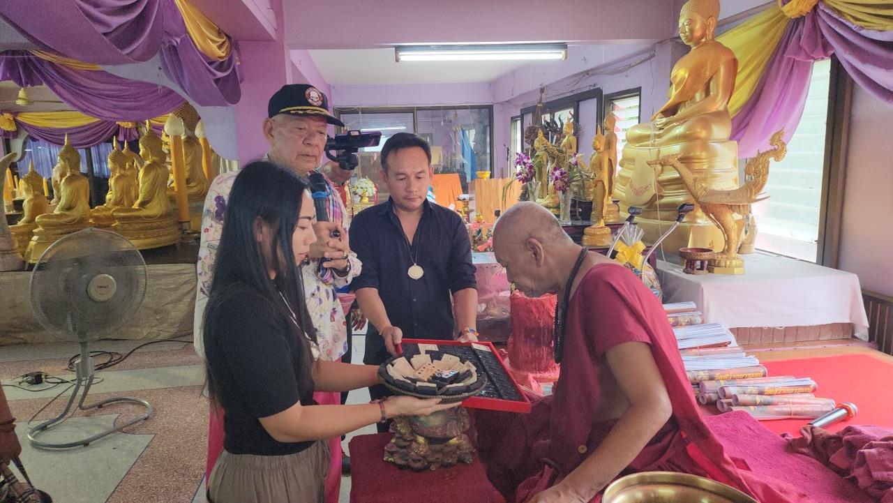 หลังเสร็จสิ้นพิธี หลวงพ่อแป๊ะ ได้แนะให้ไปกราบไหว้ขอพร พระตรีมูรติปรางค์ 9 หน้าองค์ใหญ่ของวัด จะทำให้เกิดความเจริญรุ่งเรือง เพราะองค์พระตรีมูรตินั้นมีหลายปางอยู่ในองค์เดียวกันทั้งปางก้าวหน้า มีพระศิวะ นารายณ์ พระพรหม ถือเป็นพระครอบจักรวาล ทั้งความสำเร็จ ความร่ำรวย ปกป้องคุ้มภัย แคล้วคลาดปลอดภัย โรคภัยไข้เจ็บก็ปกป้องได้ หากไหว้แล้วจะบังเกิดผลสำเร็จ จากนั้นได้นำธูปเทียนไปจุดบอกกล่าวถวายพวงมาลัย พร้อมนำพานที่ใส่พระไปกราบไหว้บอกกล่าวถึงการสร้างพระแจกครั้งนี้