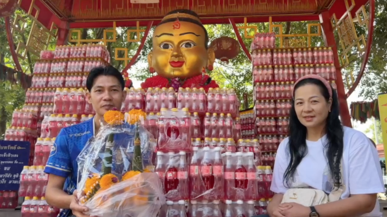 ด้าน นายกอบชัย เฉลิมพจน์ อายุ 47 ปี พนักงานบริษัท ชาวจังหวัดพระนครศรีอยุธยา ได้นำบายศรี มาถวายปู่ฤาษีพรหมเมศ และนำน้ำแดงถวายกุมารทองเจ้าสัวเฮง หลังได้รับโชคกว่า 30,000 บาท ได้เปิดเผยว่า วันนี้นำของมาแก้บน เพราะขอกุมารทองเจ้าสัวเฮงไว้ และหวังว่างวดหน้าจะได้มีโชคอีก