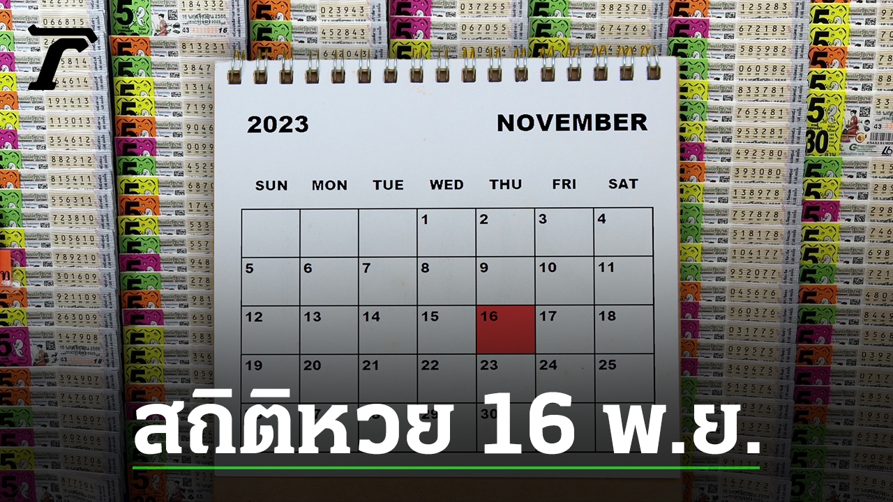 เปิด "สถิติหวย" เคยออกวันที่ 16 พ.ย. ย้อนหลัง 12 ปี พบเลขท้ายสองตัว 57 เคยออกซ้ำมาแล้ว 2 รอบ ขณะที่ "เลขดังงวดนี้" กับ "เลขมงคล" โผล่เพียบ