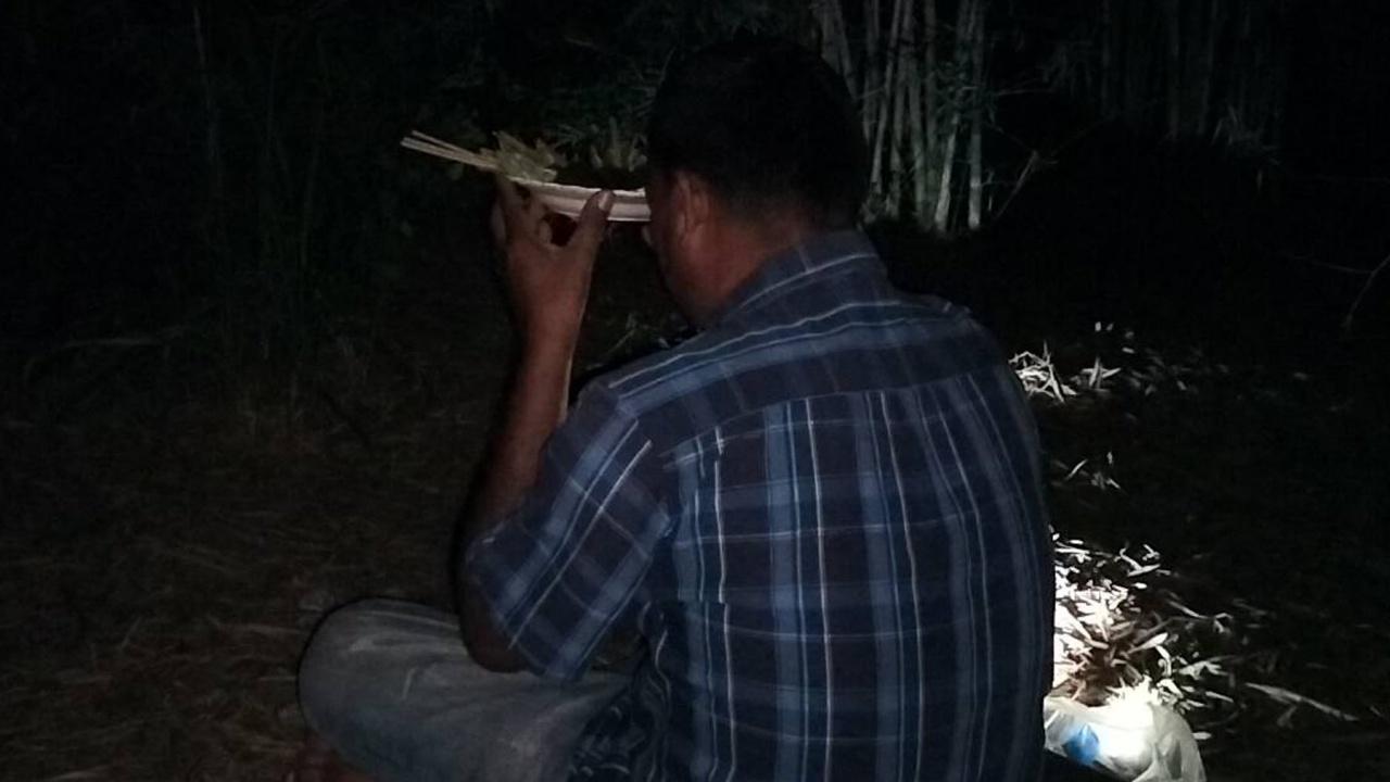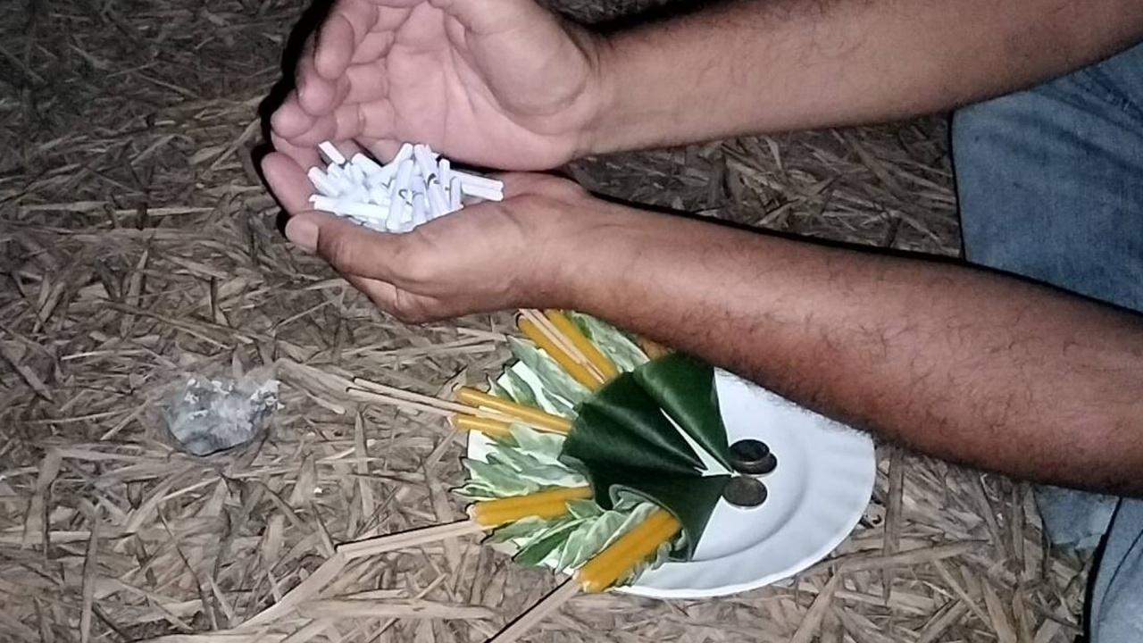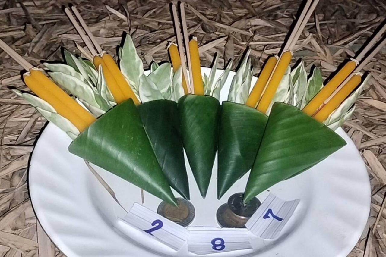 โดยในช่วงค่ำวันที่ 26 พ.ย. ที่ผ่านมา บรรดาคอหวยได้เริ่มทำพิธีจุดธูปบอกเจ้าที่เจ้าทาง จากนั้นก็ยกขันธ์ 5 เพื่อบอกกล่าวขอโชคขอลาภพญาบึ้ง ก่อนจะนำกระดาษที่เขียนตัวเลข 0-9 จำนวน 3 ชุด หย่อนลงไปในรูพญาบึ้ง ก่อนจะนั่งรอลุ้นเป็นเวลากว่า 2 ชั่วโมง พญาบึ้งถึงนำตัวเลขขึ้นมาให้