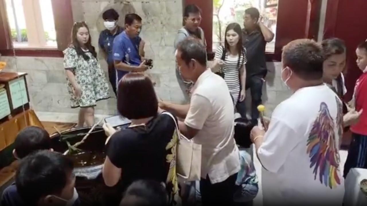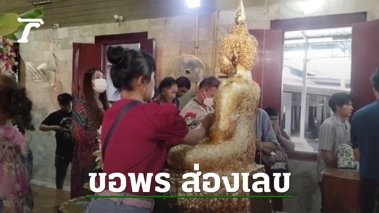 นักท่องเที่ยวเดินทางมากราบไหว้ "หลวงพ่อปากแดง" เพื่อความเป็นสิริมงคล พร้อมส่องเลขในอ่างน้ำมนต์ นำไปเสี่ยงโชคงวด 16/12/66