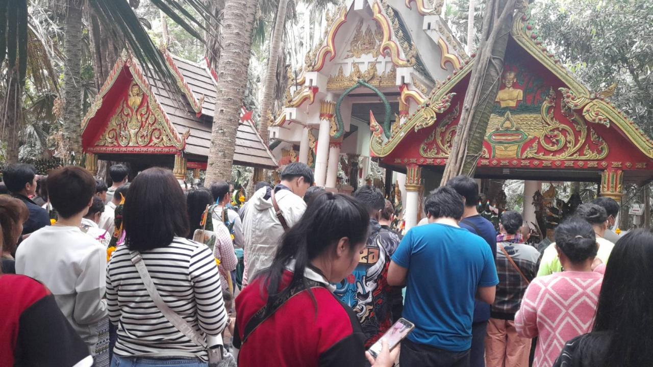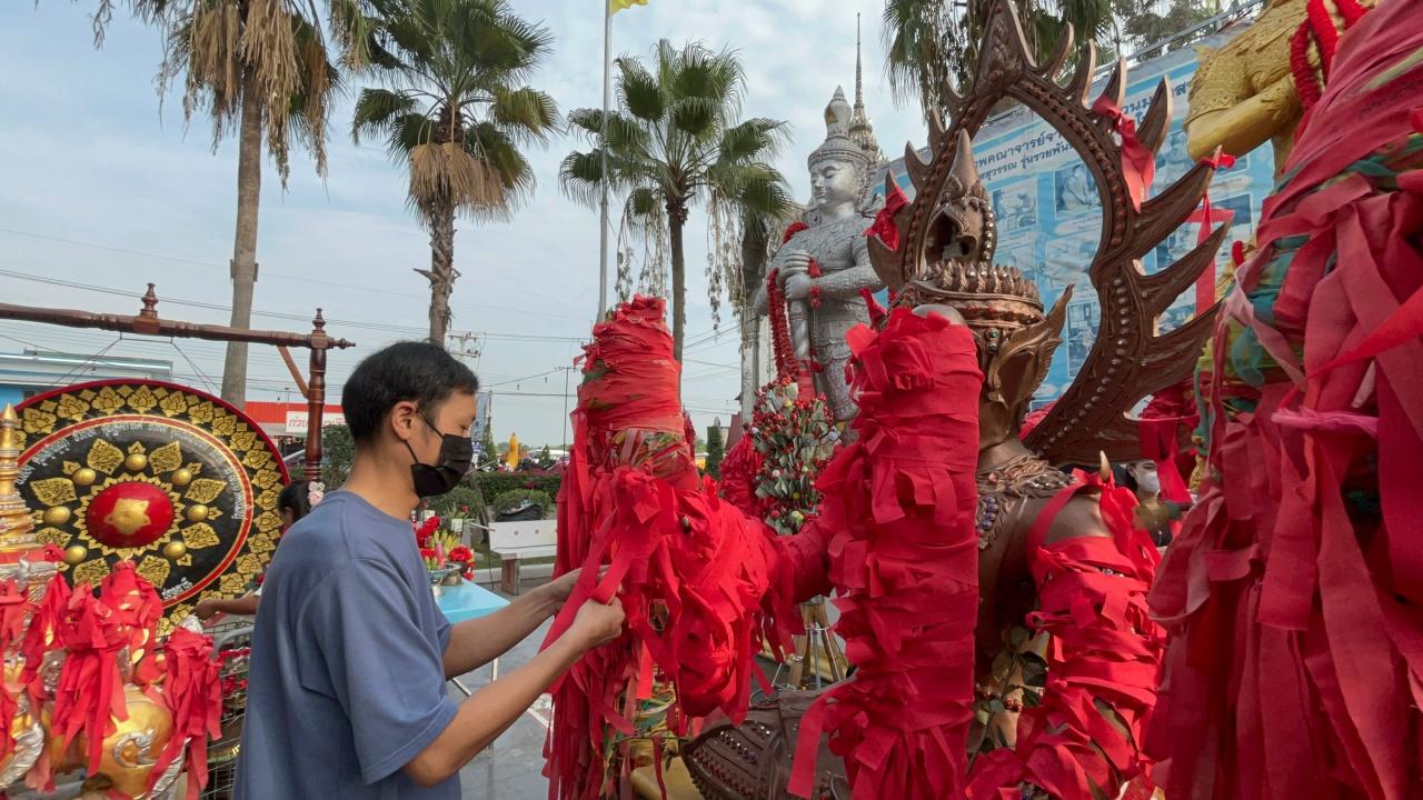 เมื่อวันที่ 25 ม.ค. 67 ที่บริเวณสวนป่าบ้านเสาร์ 5 เลขที่ 129 หมู่ 4 ต.สาวร้องไห้ อ.วิเศษชัยชาญ จ.อ่างทอง พบคนดวงเฮงและชาวบ้าน เดินทางมาทำบุญที่เรือนแม่แก้ว ต้นตะเคียนในห้องกระจกติดแอร์ หลังจากงวดที่ผ่านมา ได้เลขเด็ดจากขันน้ำมนต์แม่แก้ว ไปเสี่ยงดวงรับโชคลาภก้อนใหญ่ และไม่พลาดส่องขันน้ำมนต์หาเลขเด็ดไปเสี่ยงโชค ส่วนใหญ่เห็นเป็นเลข 157–45 ตามความเชื่อส่วนบุคคล