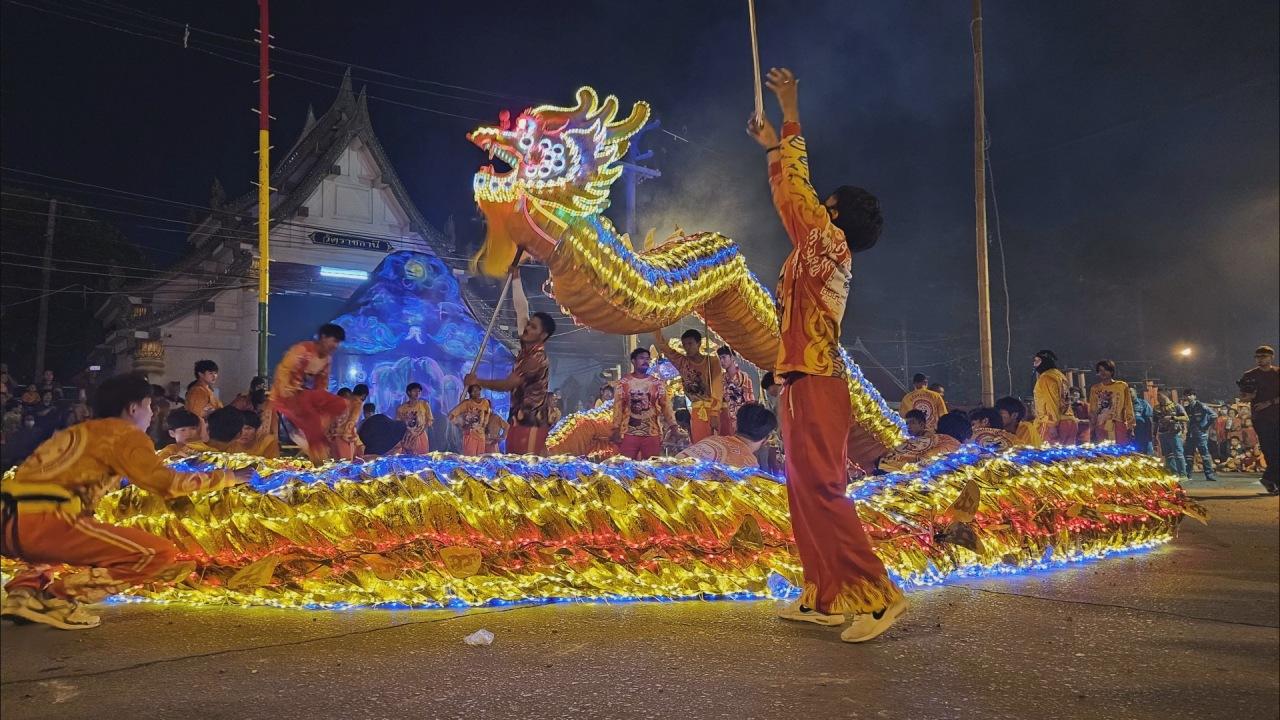 โดยในปีนี้ได้จัดให้มีการแสดงเชิดสิงโต สิงโตบนเสาดอกเหมย การต่อตัวของสิงโต สิงโตปีนกระบอกไม้ไผ่สูงกว่า 12 เมตร และการจุดประทัดพันตัว หนึ่งหมื่นนัด สร้างความตื่นเต้น และประทับใจให้แก่ผู้ดูเป็นอย่างมาก และหลังจากการแสดงจุดประทัดพันตัว หมื่นนัดเสร็จลง ประชาชนที่มาดูการแสดงต่างหยิบโทรศัพท์มือถือขึ้นมาถ่ายเลขเด็ด หางประทัดหวังได้โชคซึ่งเลขหางประทัดคือ 392 กับ 27