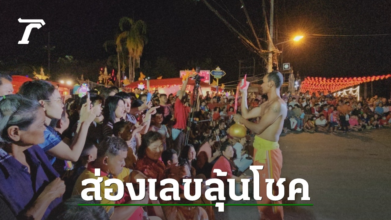 ชาวบ้านแห่ร่วมงานเทศกาลแห่เจ้าปุงเฒ่ากงม่า ขณะที่คอหวยแห่ส่อง "เลขเด็ดงวดนี้" จากปลายประทัดไปเสี่ยงโชคงวดนี้ 1/3/67