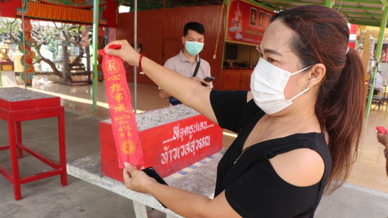 โดยหญิงรายนี้ บอกว่า จะนำหางประทัดที่นำมาบนบอกกล่าว 1 หมื่นนัดไปเสี่ยงโชค ได้หมายเลข 426 และ 21 และยังได้บนบอกกล่าวกับองค์หลวงพ่อสมหวังด้วยว่า หากได้โชคใหญ่จะกลับมาแก้บนตามที่สัญญาไว้ เพิ่มให้อีกเท่าตัว.