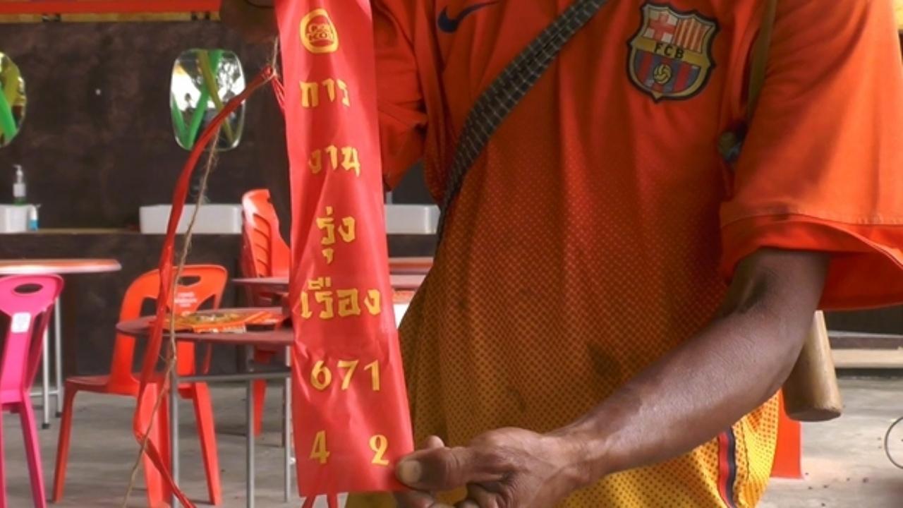 นอกจากนี้ ช่วงพิธีจุดประทัด ชาวบ้านต่างก็จดจ่อลุ้นเลขเด็ด ได้หมายเลข 671-42 บรรดาคอหวยต่างพากันนำไปลุ้นโชคงวด 1/3/67
