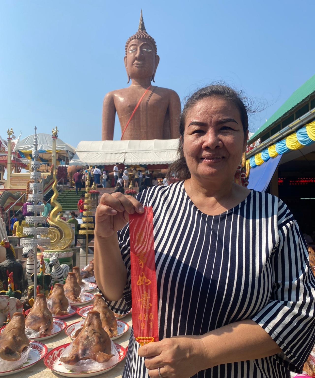 เมื่อวันที่ 25 ก.พ. 2567 ที่วัดกลางบางพระ ต.บางพระ อ.นครชัยศรี จ.นครปฐม พบมีหญิงอายุ 48 ปี มาแก้บน "องค์หลวงพ่อสมหวัง" หลังจากขายบ้ายสำเร็จตามที่เคยมาขอพร