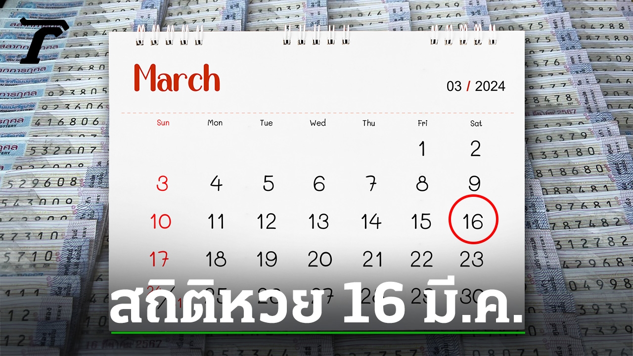 เปิดสถิติหวยวันที่ 16 มีนาคม ย้อนหลัง 10 ปี พบเลขท้าย 2 ตัว "92" เคยออกซ้ำมาแล้ว 2 งวด ขณะที่ "เลขเด็ด" และ "เลขดัง" โผล่เพียบ