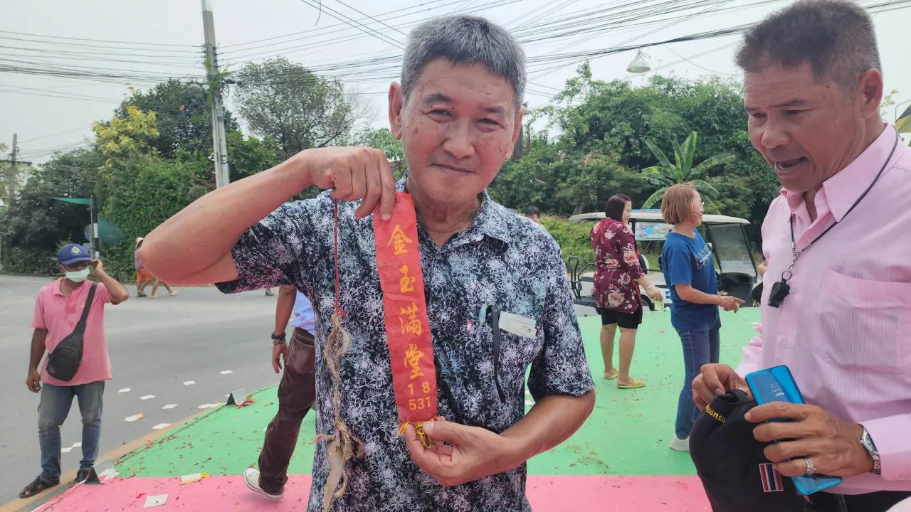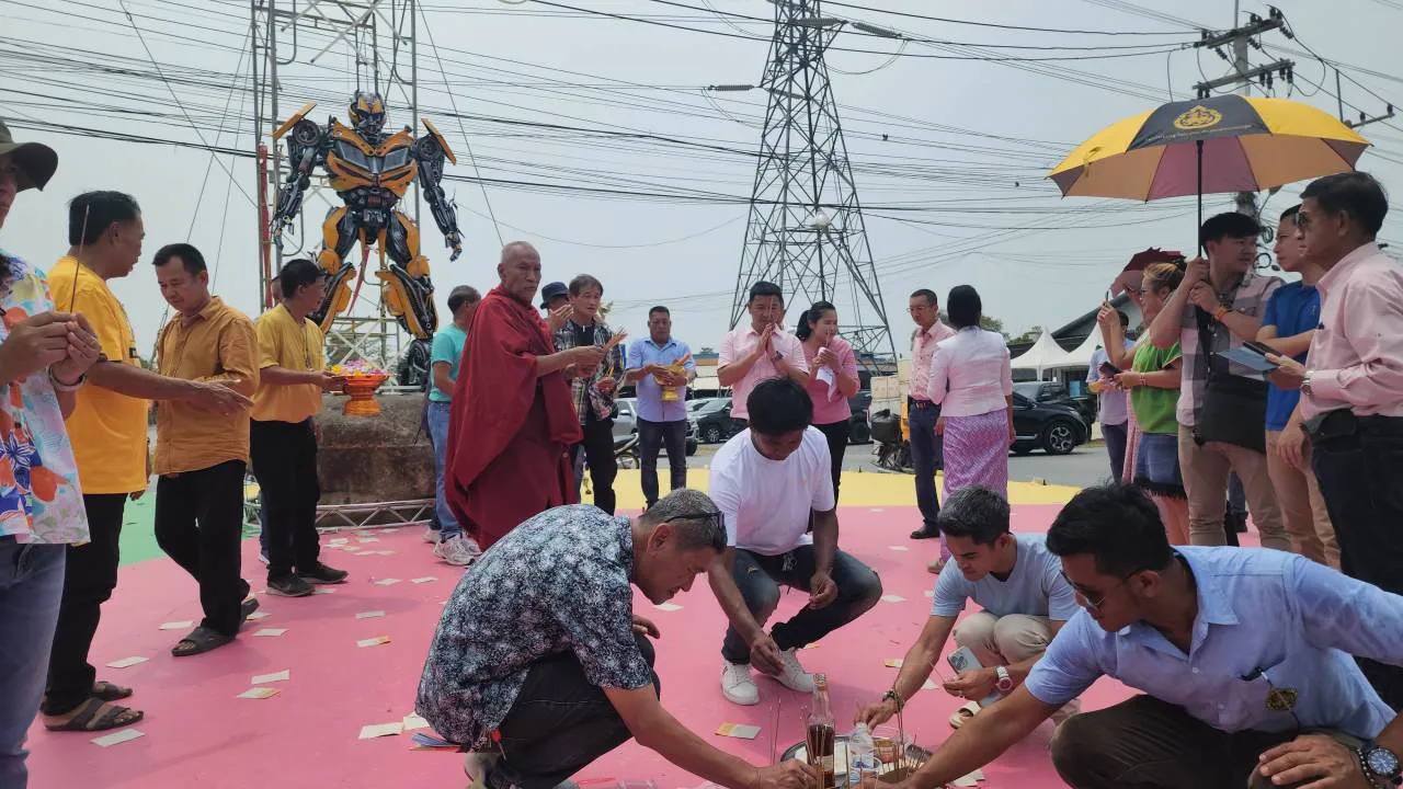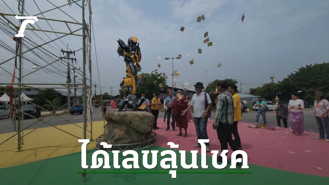 ชาวบ้านร่วมพิธีเปิด "วงเวียนหุ่นยนต์" หลังเกิดอุบัติเหตุรถยนต์เสียหลักพุ่งชนกลางวงเวียน ด้านคอหวยไม่ลืมส่อง "เลขเด็ดงวดนี้" จากปลายประทัดไปลุ้นโชค 16/3/67