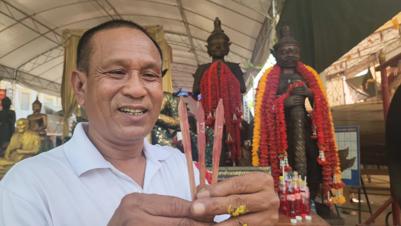 นายสมชาย ยังเผยอีกว่า ดีใจสุดคือได้พบหลวงพ่อแป๊ะ ท่านยังอวยพรให้ครอบครัวและตนเองประสบผลสำเร็จในทุกด้าน และมอบผ้ายันต์ให้คุ้มครองในการเดินทางให้ด้วย นอกจากนี้ ยังได้ขอพรขอโชคลาภกับองค์ท้าวเวสสุวรรณด้วยการเขย่าเซียมซี 3 ไม้ ปรากฏว่าได้หมายเลข 11, 13 และ 17 ที่สำคัญไม่ลืมขอเกี่ยวกับเรื่องหน้าที่การงาน เนื่องจากในสมัยหน้ายังคงมีความหวังที่จะลงสมัคร อบต.ทรายแดง อ.เมือง จังหวัดระนอง และต้องการชัยชนะเพื่อนำตำแหน่งมารับใช้ประชาชนในพื้นที่อย่างเต็มกำลังอีกด้วย.