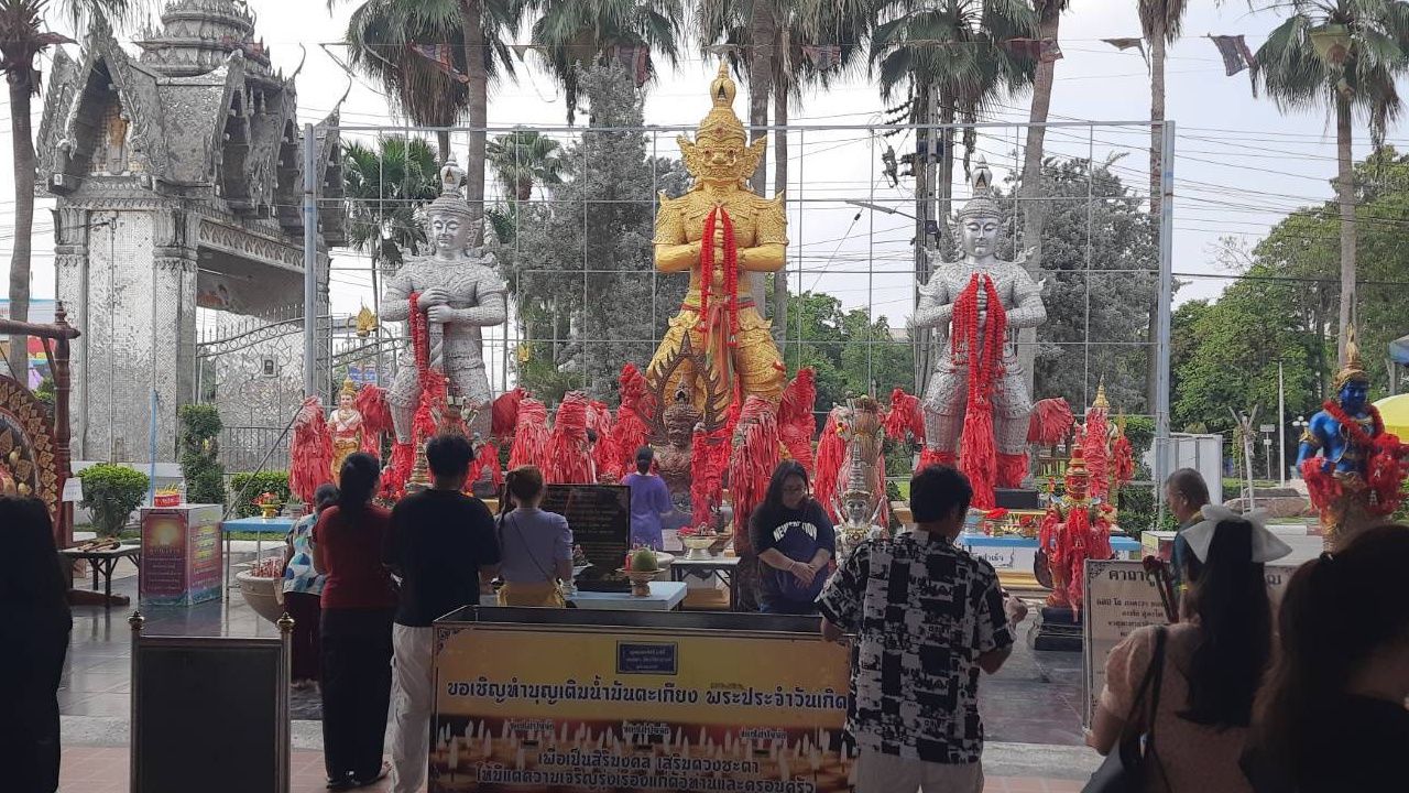 เมื่อวันที่ 7 เม.ย. 67 ที่วัดดอนใหญ่ ต.ลำลูกกา อ.ลำลูกกา จ.ปทุมธานี บรรดาสายมูจากทั่วสารทิศจำนวนมาก เดินทางมาขอโชคลาภและแก้บนกับท้าวเวสสุวรรณ และไอ้ไข่
