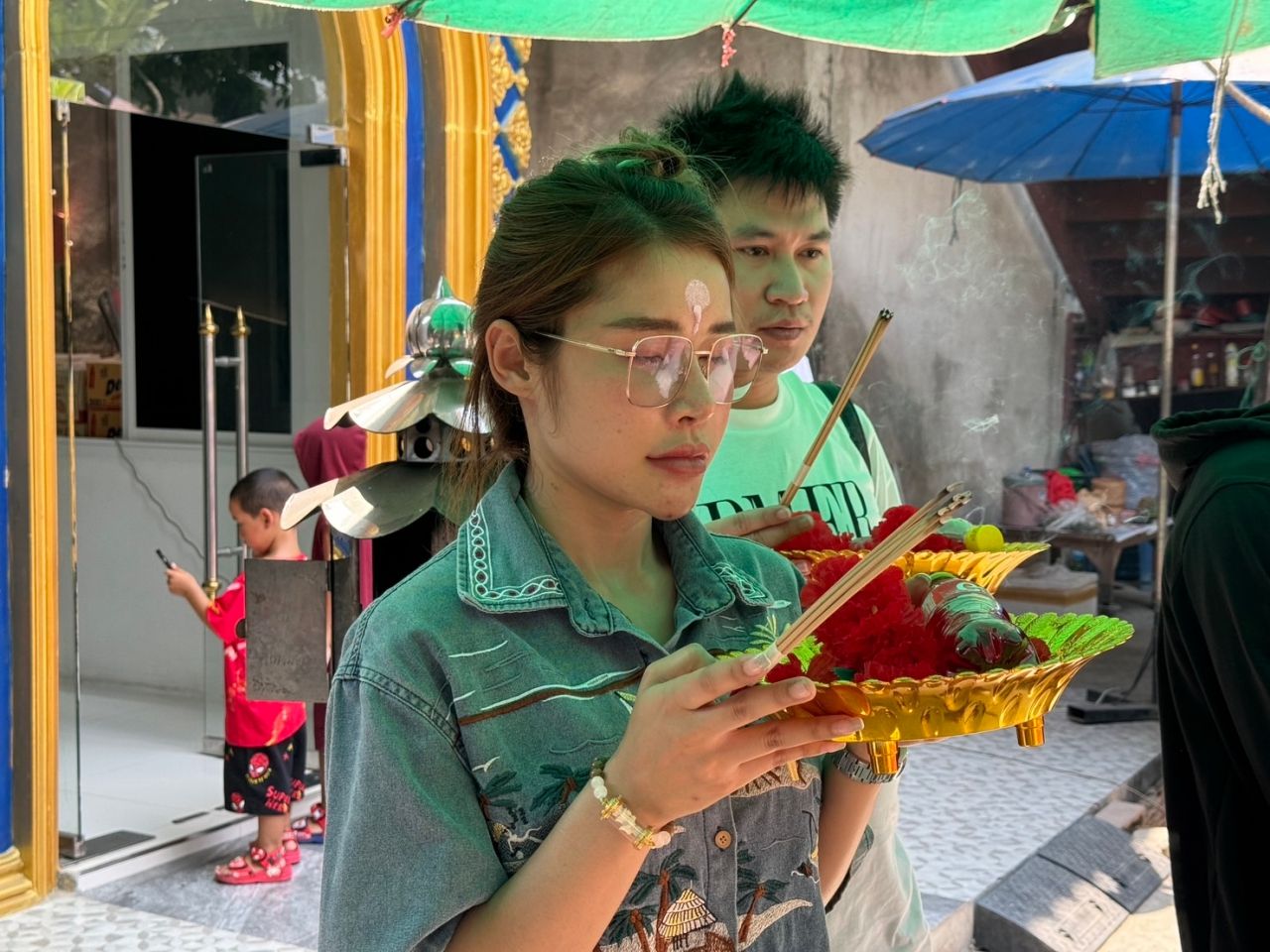 และยังไปกราบพระสังกัจจายน์และหลวงพ่อมีในวิหารหลวงพ่อและถ้ำจินดามณีที่มึเจ้าเงาะและพญานาคมีที่เพิ่งเปิดให้ประชาชนได้เข้าไปสักการะและสิ่งศักดิ์ต่างๆ ภายในอาศรม เพื่อขอโชค ขอพร และเพื่อความเป็นสิริมงคล รวมทั้งเข้าร่วมพิธีทำบุญถวายข้าวสาร ยกพ่อแก่ อาบน้ำมนต์หมื่นวัดและเจิมเปิดดวงเศรษฐี