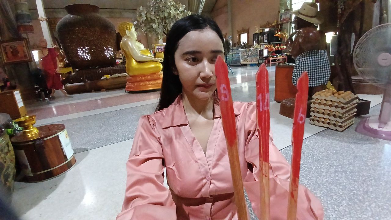 แม่ค้าสาวชาวสมุทรสงคราม มาขอพร "พระเงิน พระทอง" วัดดัง ไม่พลาดส่องเลขเด็ดอ่างน้ำมนต์ จาก "ตาทองงิ้วราย" ลุ้นรวยงวด 2/5/67