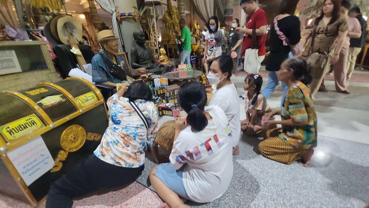 วันที่ 26 พ.ค. 2567 ที่วัดสว่างอารมณ์ แคแถว ต.ขุนแก้ว อ.นครชัยศรี จ.นครปฐม เมื่อวันที่ 25 พ.ค. ที่ผ่านมา พบว่า บรรยากาศในช่วงใกล้วันหวย มีสาธุชนเดินทางมากราบไหว้สิ่งศักดิ์สิทธิ์และหาเลขเด็ดกันอย่างต่อเนื่อง ทำให้บรรยากาศภายในวัดเป็นไปอย่างคึกคัก โดยเฉพาะบริเวณศาลาการเปรียญของวัดสว่างอารมณ์ สถานที่ประดิษฐานพระเงินพระทอง พระพุทธรูปศักดิ์สิทธิ์ หรือ "หลวงพ่อรวย" ของวัดสว่างอารมณ์ และที่ตั้งหุ่นปั้น "ตาทองงิ้วราย" ชายชราที่นั่งอยู่ข้างอ่างน้ำมนต์ที่มีหยดน้ำตาเทียนลอยอยู่ ซึ่งบรรดาสาธุชนและนักเสี่ยงโชคจากรุมล้อมให้ความสนใจกันอย่างมาก