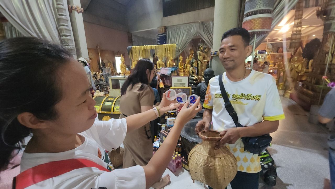 คอหวยส่อง "เลขเด็ด" อ่างน้ำมนต์ "ตาทองงิ้วราย" วัดสว่างอารมณ์ หวังเป็นแนวทางรวยงวดนี้