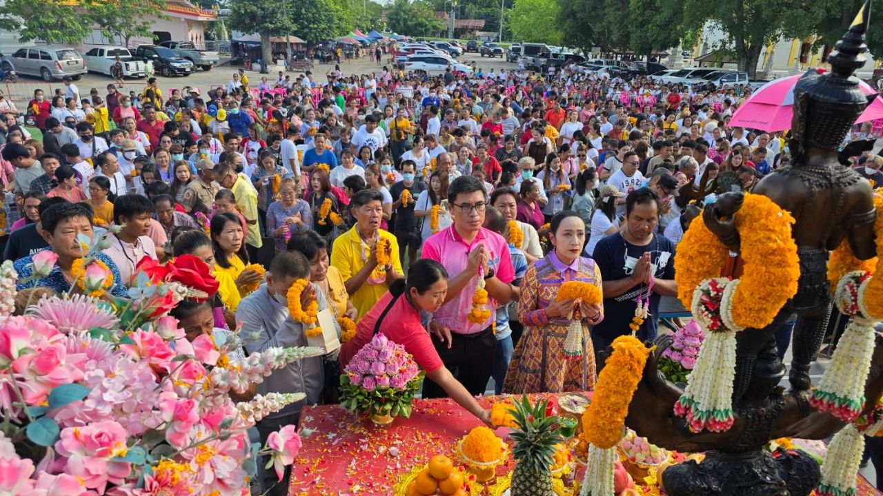 ชาวบ้านแห่ร่วมพิธีขอพร "ท้าวเวสสุวรรณ" หน้าทองคำ วัดคงคาราม เพื่อขอพรเปิดทรัพย์เปิดดวง เสริมบารมี แถมได้ "เลขเด็ดงวดนี้" จาก "ธูปมงคล" กลับไปลุ้นโชค 1/6/67