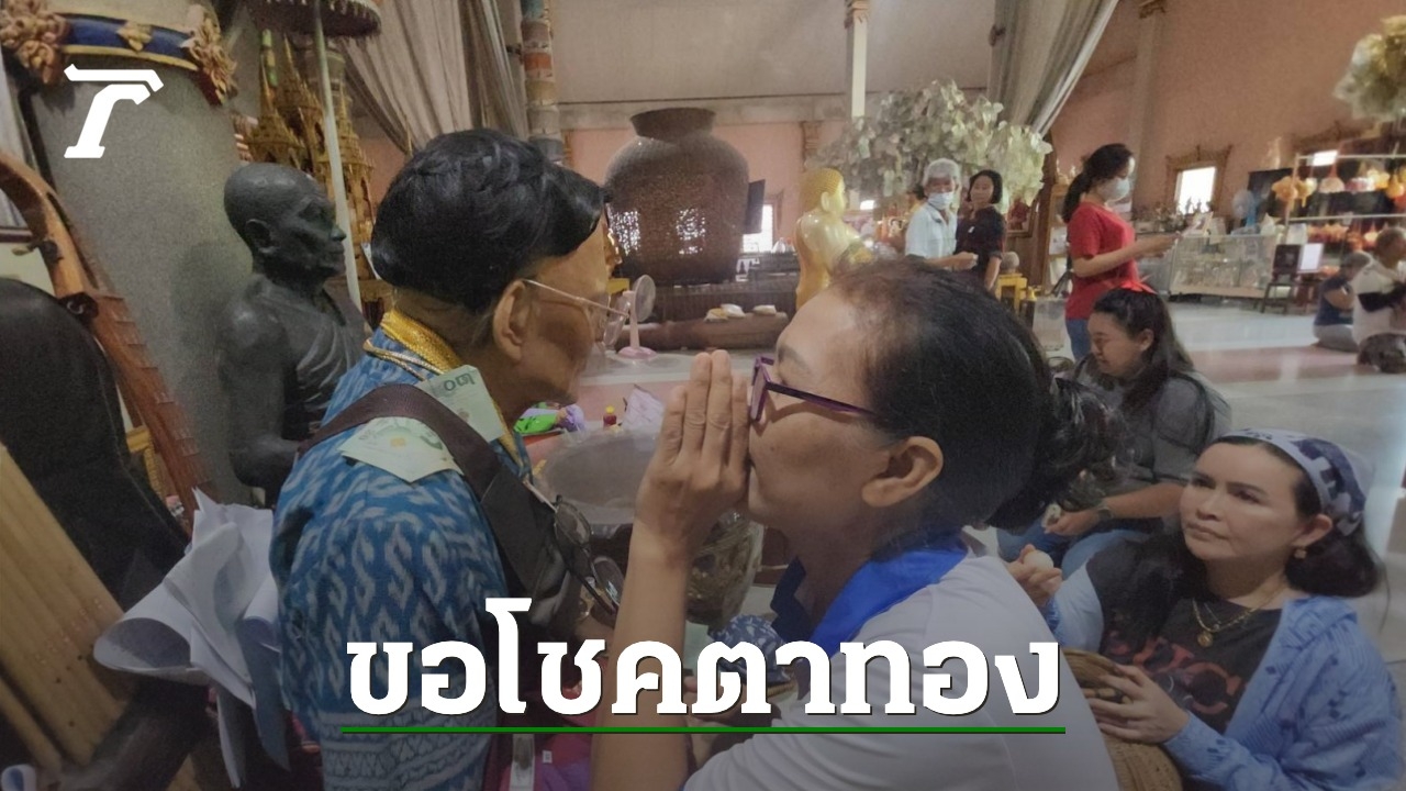 นางมิตร รันตวน อายุ 56 ปี ชาวศรีสะเกษ หนึ่งในผู้ที่เดินทางมาหาโชคลาภ เปิดเผยว่า ตนทำงานเป็นพนักงานที่โรงงานอาหารแห่งหนึ่งในจังหวัดสมุทรสาคร ซึ่งวันที่มาขอนี้ตรงกับวันคล้ายวันเกิดครบรอบ 56 ปี จึงเดินทางมากราบไหว้ถวายสังฆทานจากหลวงพ่อแป๊ะ ลงยันต์หลังมือ เจิมหน้าผากเพื่อเป็นสิริมงคล และถือโอกาสมาขอโชคขอลาภจากตาทองงิ้วราย เพราะวันเกิด 2 ปีที่ผ่านมา มากราบไหว้ขอพรหลวงพ่อ และขอโชคตาทองงิ้วราย ปรากฏว่าถูกเลขท้าย 3 ตัว ทั้ง 2 ครั้ง ปีนี้จึงมาขออีก เพราะหวังจะได้โชคกลับไปอีก