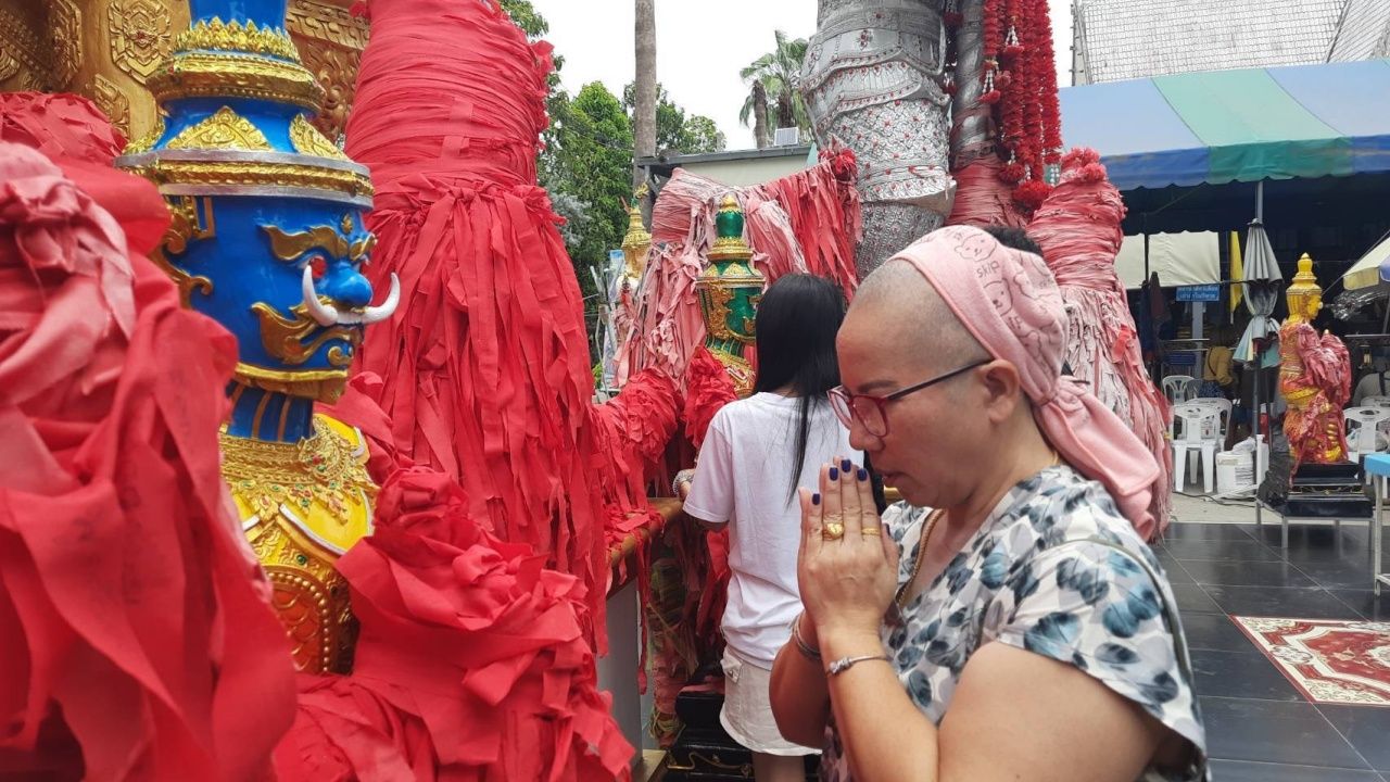 โดยกล่าวว่าได้โกนศีรษะเพื่อแก้บน หลังได้โชคสมหวังจากท้าวเวสสุวรรณ ทั้งโชคลาภถูกรางวัลชุดใหญ่ ได้เงินมากว่าสองแสน อีกทั้งมีงานเข้ามาจำนวนมาก จึงได้เดินทางมาทำตามสัญญาที่ให้ไว้กับท้าวเวสสุวรรณ พร้อมจุดธูปเสี่ยงทายได้เลข 994 นำไปเสี่ยงโชคอีกครั้ง