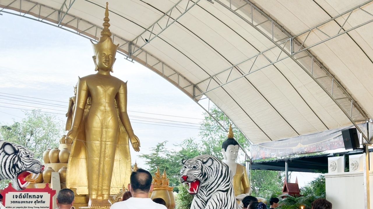 เมื่อวันที่ 11 มิ.ย. 67 ที่วัดหนองทอง หมู่ 11 ต.บ้านสวน อ.เมือง จ.สุโขทัย ต่างเนืองแน่นไปด้วยชาวบ้าน ที่เดินทางมากราบไหว้ขอพร พระมหาจักรพรรดิเปิดโลก บริเวณเจดีย์ไหทอง เพื่อความเป็นสิริมงคล และไม่พลาดส่อง "เลขเด็ด" จากขันน้ำมนต์ ซึ่งปรากฏหมายเลข 1, 2, 7, 8, 9 ทำให้บรรดาคอหวยไม่พลาดแห่ส่องไปเสี่ยงโชค.