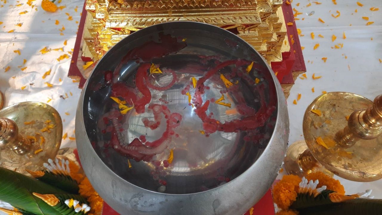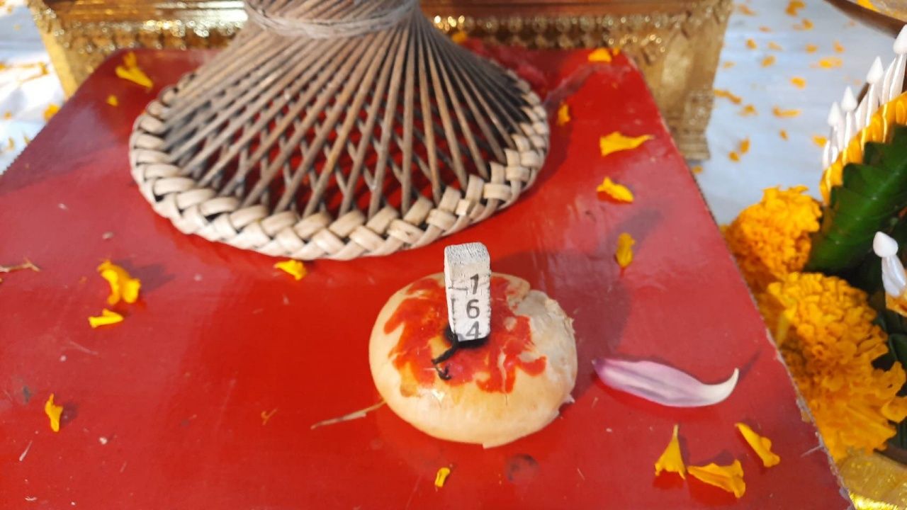 ส่วนอีกคณะหนึ่งจุดธูปมงคลนำโชค ที่โต๊ะบวงสรวงเปิดทรัพย์รับโชค โดยมีพ่อจ้ำชวการ คำวันสา พ่อจ้ำประจำลานบวงสรวงเป็นผู้พานำทำพิธี หลังพิธีเสร็จ มองเห็นตัวเลขมงคล 164, 461 สำหรับตัวเลขที่ขันน้ำมนต์ น้ำตาเทียนสีแดง มีเลข 4-5-0 เผื่อพ่อปู่แม่ย่าให้โชคในงวดวันที่ 16 มิถุนายน นี้.