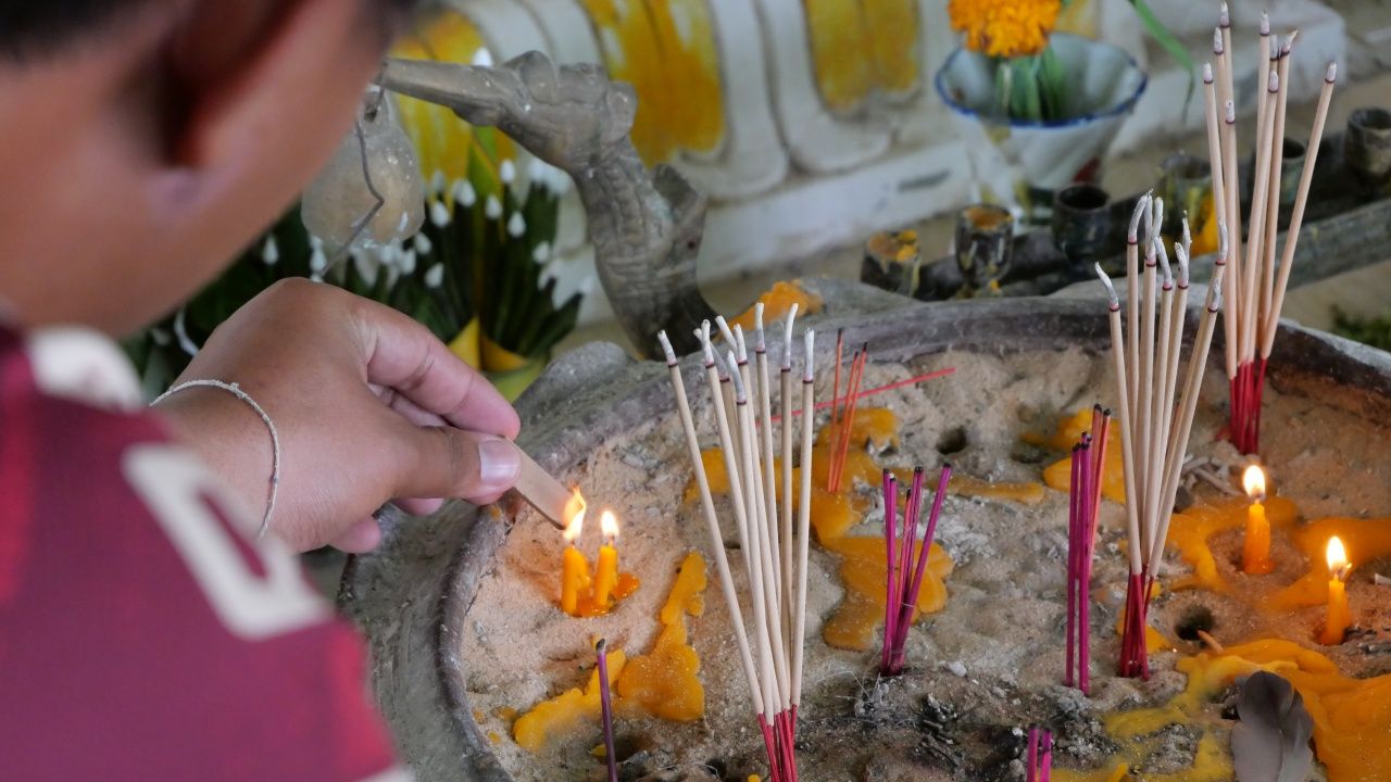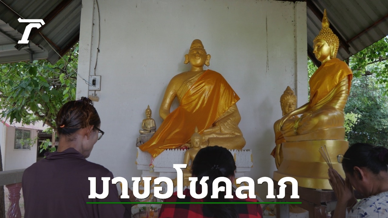 คอหวยมาขอพร "องค์หลวงปู่แหวง" วัดป่าหัวงัวดอนสวรรค์ พร้อมบนหาก "เลขเด็ด" ธูปมงคล ให้โชคถูกหวยรางวัลที่ 1 จะนำเงินมาสร้างหลังคาศาลาการเปรียญให้วัด