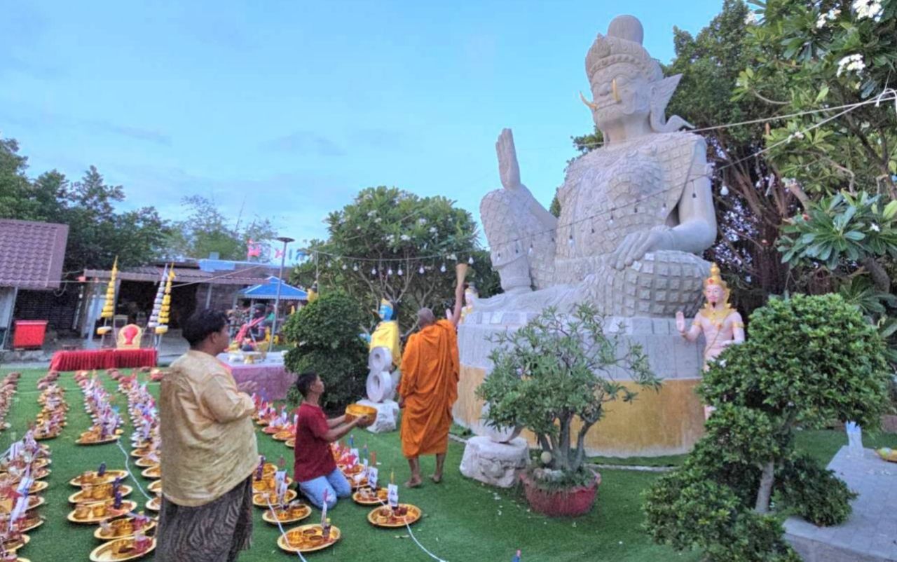 วันที่ 26 มิถุนายน 2567 ที่สำนักบารมีแม่ผีเสื้อสมุทร ต.ดอนคา อ.อู่ทอง จ.สุพรรณบุรี อาจารย์เกรียงไกร พลายสยาม เจ้าสำนักบารมีแม่ผีเสื้อสมุทร ได้ทำพิธีบวงสรวงอัญเชิญงาประดับที่พระพักตร์ของแม่ผีเสื้อสมุทรองค์ใหญ่ ซึ่งกำลังมีการก่อสร้างความสูงขนาด 8 เมตร โดยได้นิมนต์พระภิกษุ 9 รูปมานั่งสวดเจริญพระพุทธมนต์ชัยมงคลคาถาทั้ง 4 ทิศ พร้อมกันนี้มีชาวสิงคโปร์เดินทางมาร่วมประกอบพิธีในการเสริมดวงชะตาโดยการนำรายชื่อกว่า 500 คนมาเข้าร่วมพิธีให้อาจารย์เกรียงไกร พลายสยาม เจ้าสำนักทำพิธี
