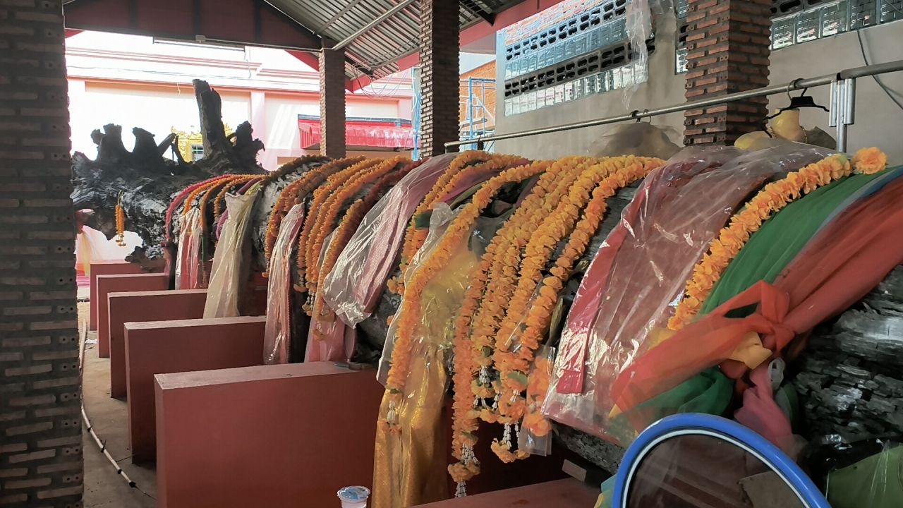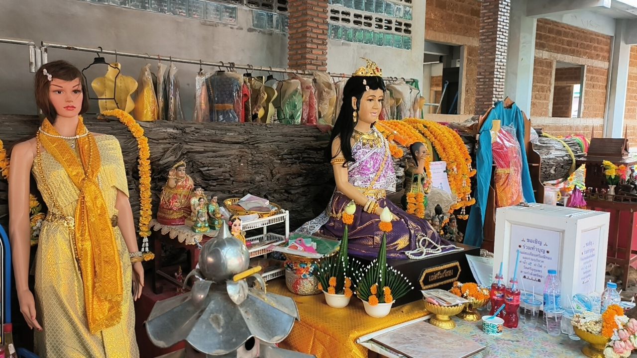 และที่พลาดไม่ได้คือการขอดูแผ่นกระดาษที่ติดไว้บริเวณลำต้นของแม่ศรีมณีทอง มีข้อความปริศนาที่ว่า "หงส์กับปลาห้าตัวลงล่างตาย เสือสามตัวลงต่ำ" พร้อมเลข 2 แถวที่เห็น มีเลข 685 32 บางคนก็จะถ่ายภาพไว้ในโทรศัพท์ก็ออกไปหาซื้อเลขตามแผงลอตเตอรี่แถวบ้านต่อไป.
