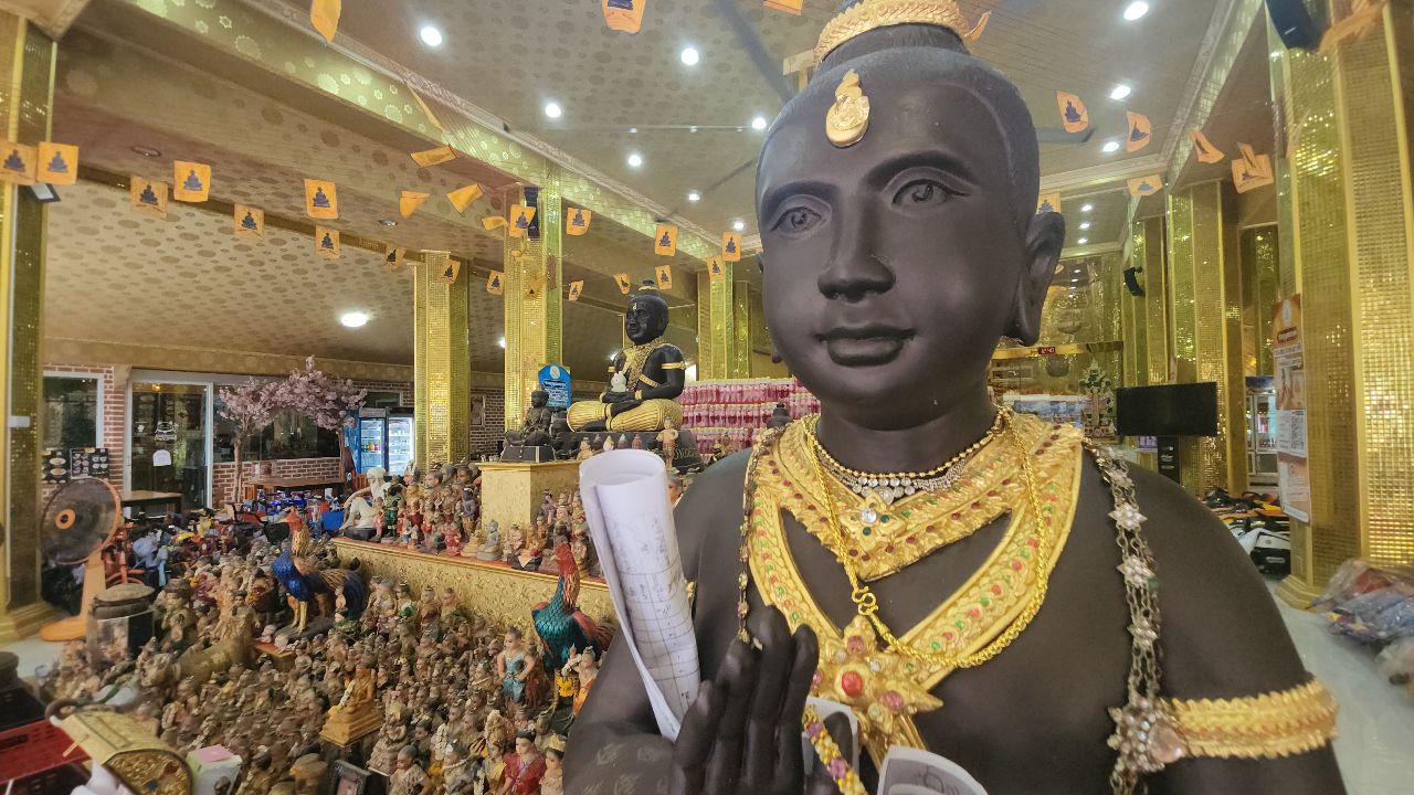 ขณะเดียวกัน ในส่วนของการขอโชค บรรดาสายมูก็ได้นำธูปมงคลมาจุดถวายและบนบานศาลกล่าว จุดอธิษฐานต่อหน้าองค์ท้าวเวสสุวรรณ แล้วรอลุ้นก่อนไปหาซื้อลอตเตอรี่ ซึ่งมีตัวเลขให้เห็นหลายเลขในกระถางธูป ที่ธูปถูกจุดไปหมดดอก เหลือตัวเลข เช่น 442-684-551 และ 926 เป็นต้น