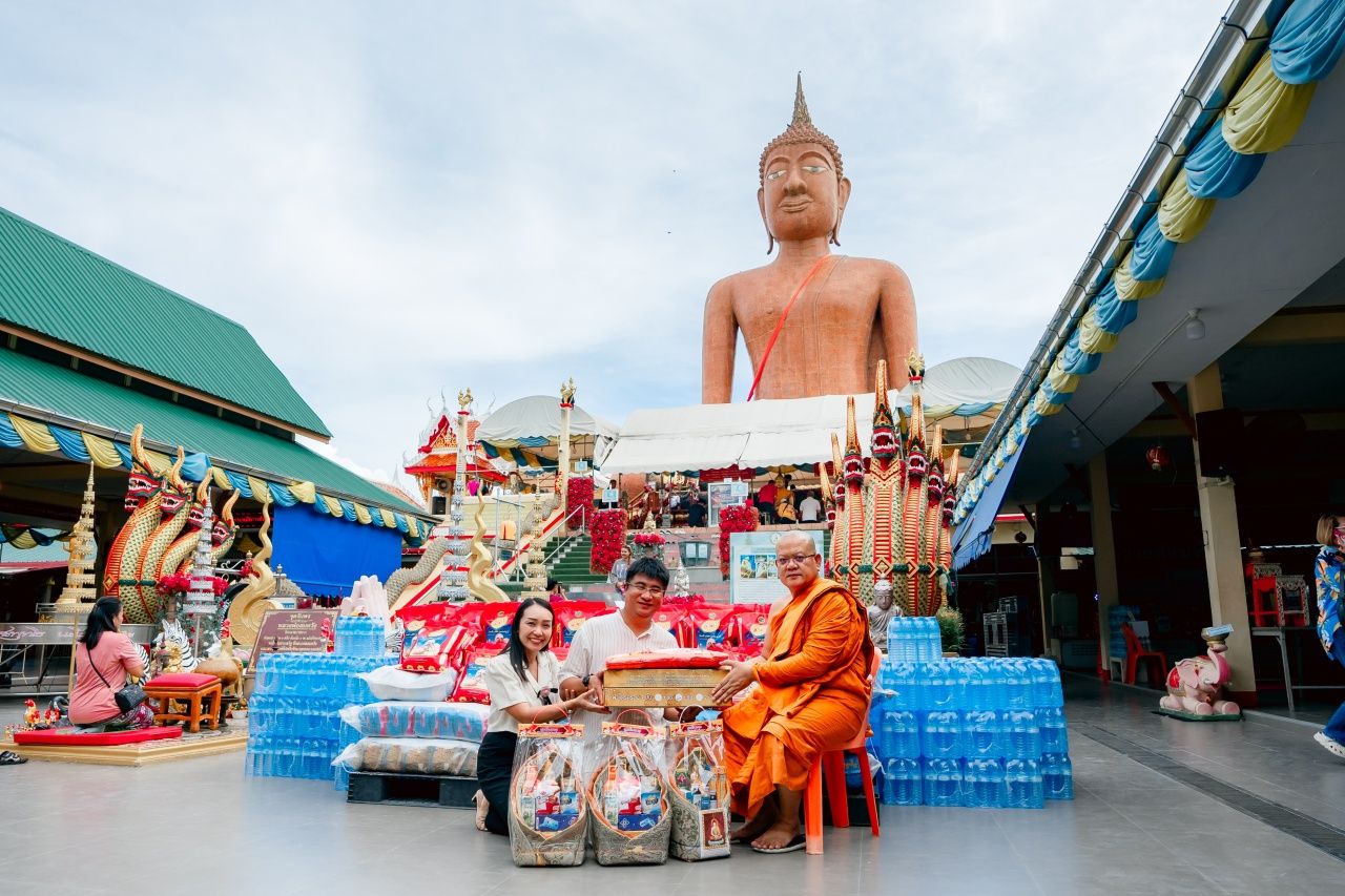 วันที่ 21 ส.ค. 2567 ผู้สื่อข่าวรายงานว่า ที่วัดกลางบางพระ (หลวงพ่อสมหวัง) ต.บางพระ อ.นครชัยศรี จ.นครปฐม นายฐิติพันธ์ เตชะสิทธินันท์ อายุ 45 ปี เจ้าของบริษัทผู้ผลิตและติดตั้งโซลาร์เซลล์รายใหญ่ จ.พระนครศรีอยุธยา และนางปิยธิดา เตชะสิทธินันท์ อายุ 38 ปี ภรรยา ได้นำข้าวสาร 1,000 กิโลกรัม บรรจุถุงละ 5 กก. จำนวน 200 ถุง น้ำดื่ม 200 แพ็ก มาถวายแด่หลวงพ่อสมหวัง พระพุทธรูปปางมารวิชัย หรือ ปางสะดุ้งมาร ที่มีขนาดความสูงกว่า 30 เมตร เป็นที่ศรัทธาของชาวนครปฐมและชาวบ้านใกล้เคียง