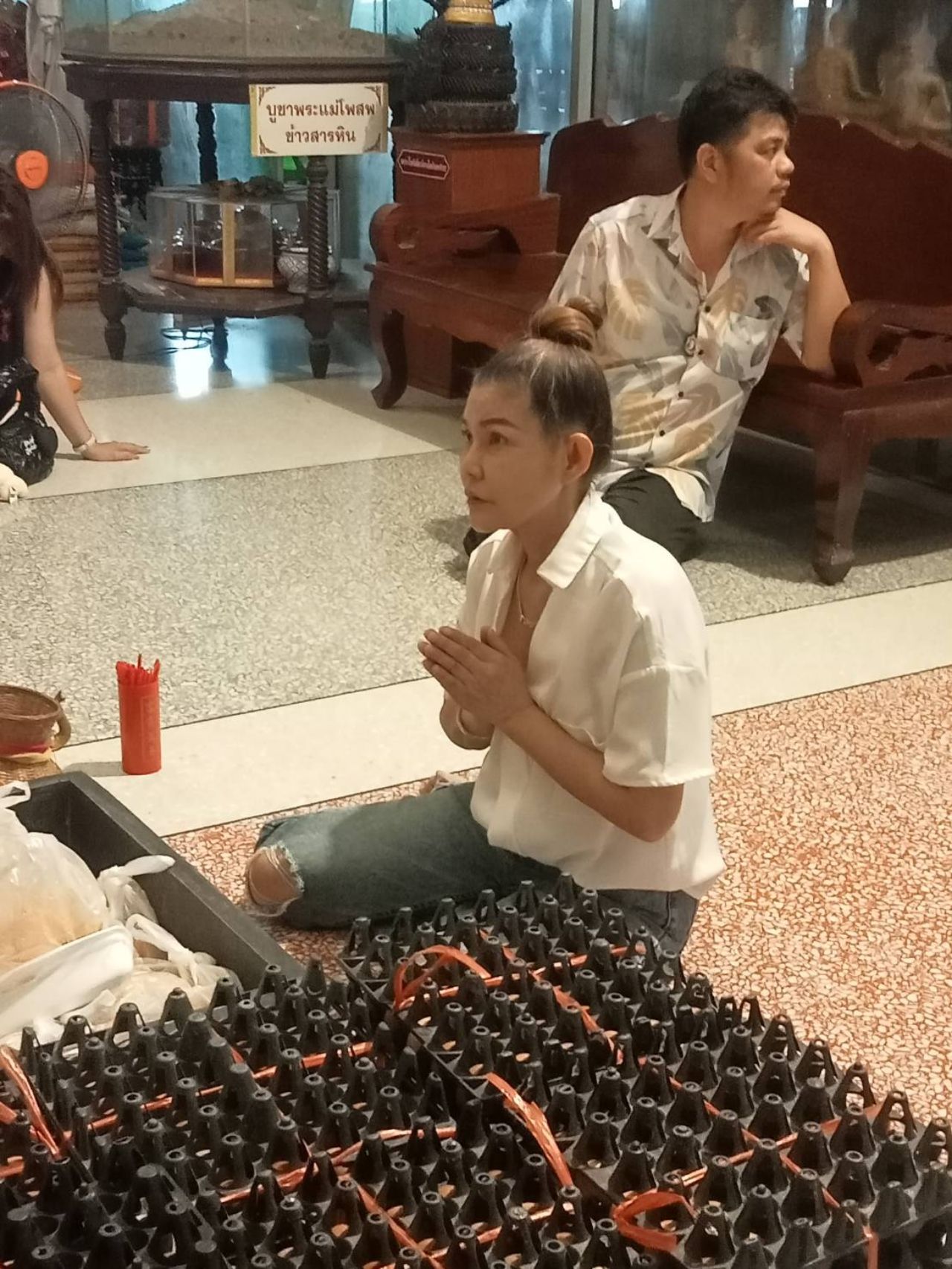 เจ้าของร้านหมูกระทะ ขายที่ดินได้สมใจ นำไข่ต้มและไก่ต้ม แก้บน "พระเงินพระทอง" วัดสว่างอารมณ์ ก่อนกลับไม่พลาดขอโชค "เลขเด็ด" ไปลุ้นงวด 1/9/67