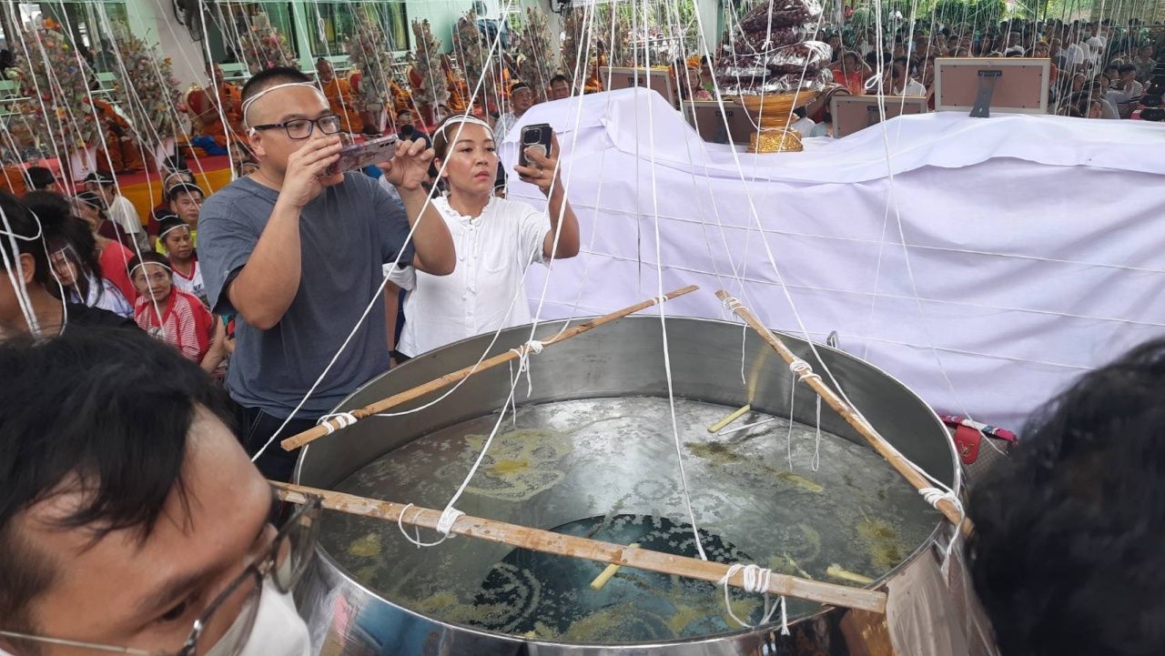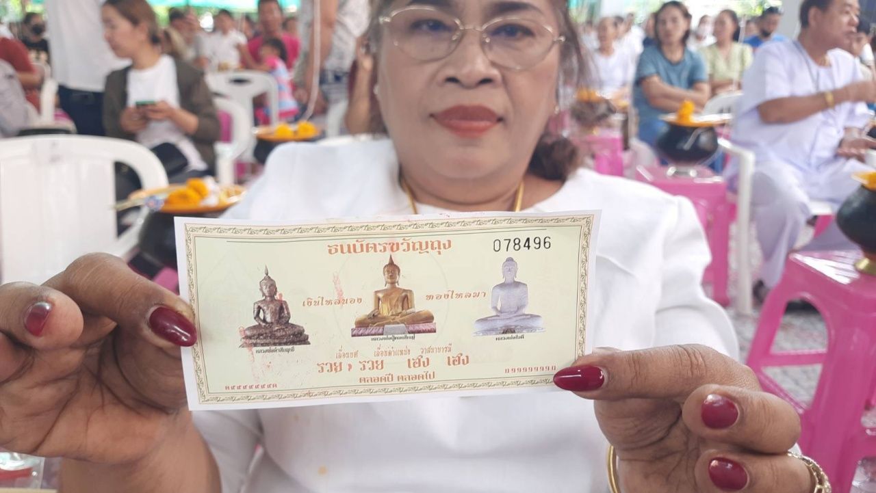 น.ส.กาญดา เชิยชัยศรีพงศ์ เจ้าของลูกชิ้นเกาะสมุย หนึ่งในผู้ร่วมพิธี เผยว่า ตนมาร่วมพิธีอาบน้ำมนต์บาทเดียวหลายครั้งแล้ว ทุกครั้งที่มาร่วมพิธีจะประสบความสำเร็จในธุรกิจ และยังได้โชคจากเลขธนบัตรมงคลที่ได้จากพานครูที่ใช้ในการทำพิธี ซึ่งตนนำไปเสี่ยงโชคได้เงินหลักแสนมาแล้วหลายงวด ล่าสุดได้มา 7 แสนบาท ซึ่งครั้งนี้เลขธนบัตรเป็นเลข 078496 ซึ่งก็จะได้นำไปลุ้นโชคในงวดวันที่ 1 ก.ย. 67 ด้วย