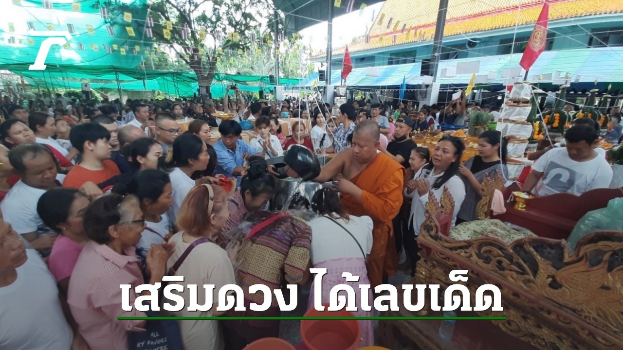 คนแห่ "อาบน้ำมนต์บาทเดียว" วัดดอนใหญ่ กว่า 7 พันคน เพื่อความเป็นสิริมงคล ได้เลขเด็ดงวด 1/9/67 ติดมือเสี่ยงโชคงวดนี้