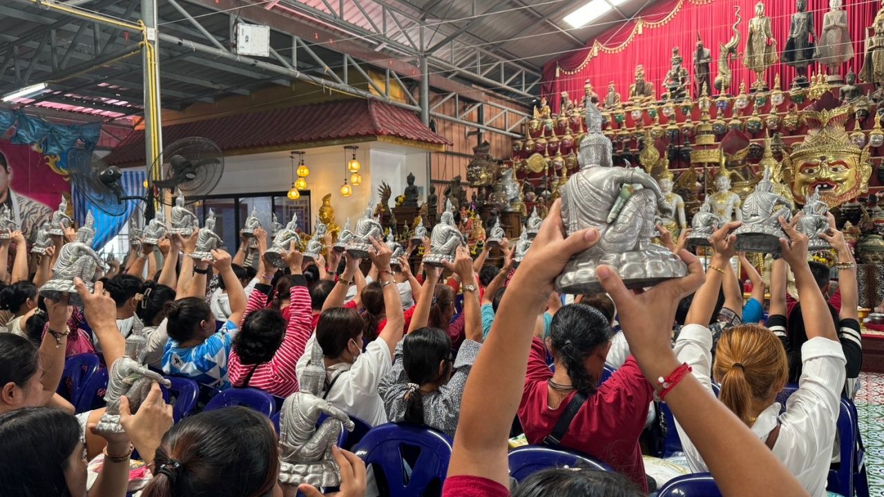 วันที่ 12 กันยายน 2567 ผู้สื่อข่าวรายงานว่า ที่อาศรมฤๅษีเณร ธาตุพุทธคุณ ถนนวงแหวนตะวันตกหมายเลข 9 ต.โพธิ์แตง อ.บางไทร จ.พระนครศรีอยุธยา ประชาชนหลายพันคนได้พาครอบครัวเดินทางมากราบไหว้ "ท้าวเวสสุวรรณ" ปาง 9 หน้า สูง 16 เมตร "พ่อปู่ฤๅษีพรหมเมศ" องค์ใหญ่ที่สุดในโลก "กุมารทองเจ้าสัวเฮง" และสิ่งศักดิ์สิทธิ์ต่าง ๆ ภายในอาศรม เพื่อขอโชค ขอพร ปะพรมน้ำมนต์ และยังได้ให้อาจารย์ฤๅษีเณรเจิมฝ่ามือเปิดดวงเศรษฐี ถวายข้าวสาร ยกพ่อแก่เพื่อความเป็นสิริมงคล โดยระหว่างพิธียกพ่อแก่ หลายคนมีอาการสั่น ร้องไห้ ตะโกน คล้ายอาการของขึ้น