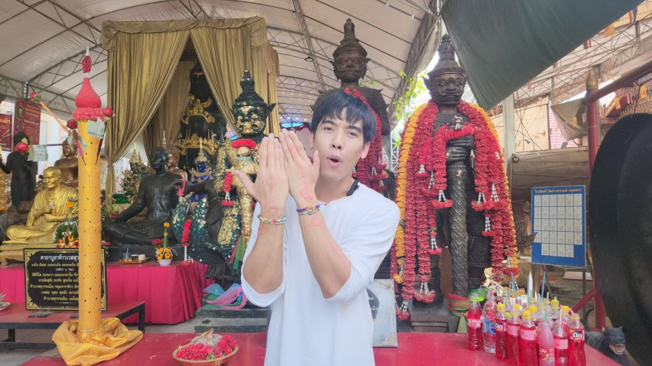 วันที่ 5 ก.ย. ที่วัดสว่างอารมณ์ แคแถว ต.ขุนแก้ว อ.นครชัยศรี จ.นครปฐม "ปาร์ค ภัทรพงศ์" นักร้องลูกทุ่งดัง ซุ่มเดินทางมาพบหลวงพ่อแป๊ะ เกจิดัง เจ้าอาวาสวัดสว่างอารมณ์ เพื่อลงยันต์หลังมือ พร้อมเข้ากราบไหว้ขอพรองค์ท้าวเวสสุวรรณ ที่มีขนาดความสูงกว่า 4 เมตร