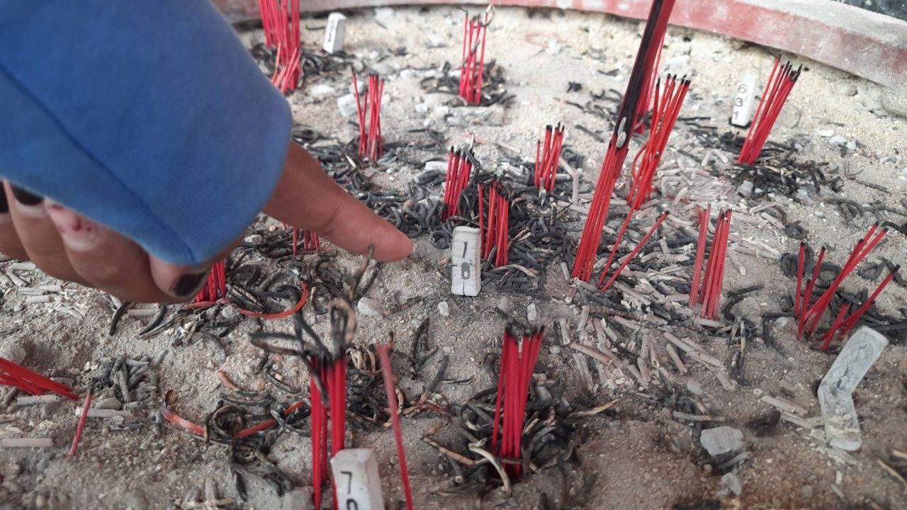 นำพวงมาลัยสีแดง และฟักทองใส่พานถวาย จุดธูปบูชา ตั้งจิตอธิษฐานขอพร พร้อมถือโอกาสขอโชคลาภไปด้วย โดยนำธูปมงคลปักไว้ที่ฟักทองถวายกับองค์ท้าวเวสสุวรรณ อธิษฐานขอโชคลาภก้อนโต จากนั้นนำธูปมงคลไปจุด รอจนกระทั่งธูปหมดดอก ปรากฏเลข 628 ก่อนเดินทางกลับ ได้เดินไปหาซื้อลอตเตอรี่ตามแผงที่วางขายภายในวัด