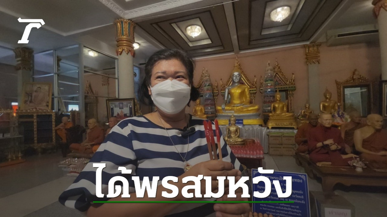 หญิงแม่บ้านสมหวัง หอบของมาแก้บน "พระเงินพระทอง" หลังขายตึกได้สำเร็จ ไม่ลืมเขย่าเซียมซีขอ "เลขเด็ดงวดนี้" ไปลุ้นโชค 1/10/67