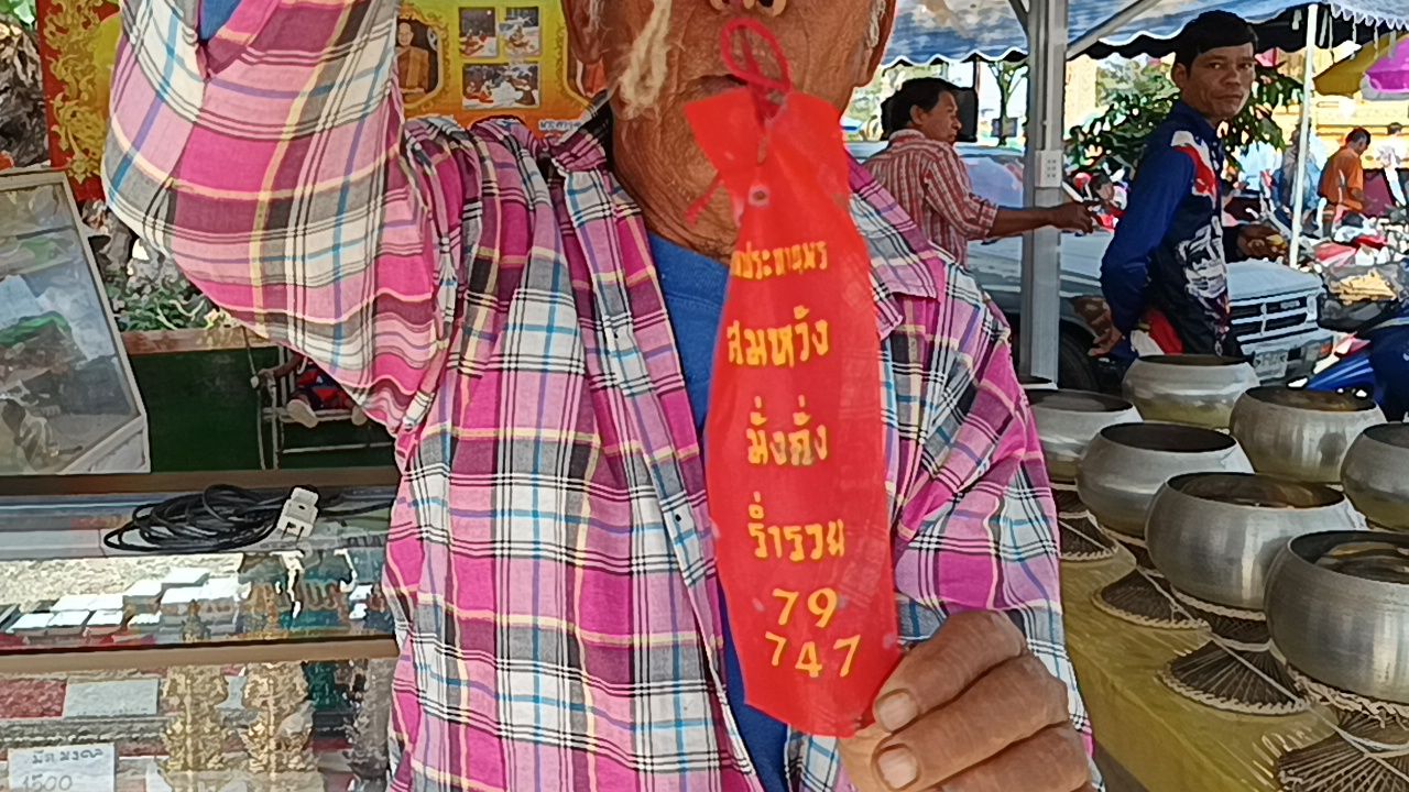 อย่างไรก็ตาม ผู้สื่อข่าวรายงานอีกว่า ก่อนเข้าโบสถ์ได้มีการจุดประทัด 1 แสนนัด ถวายสิ่งศักดิ์สิทธิ์ โดยสาธุชนและนักเสี่ยงโชครวมถึงญาติผู้บรรพชาอุปสมบท ต่างกรูกันเพื่อมาขอดูเลขหางประทัด ปรากฏว่าได้เลข 747 และ 79 สายมูต่างนำโทรศัพท์มือถือมาถ่ายรูปไว้ และนำไปหาซื้อเลขเด็ดพ่อค้าแม่ค้าที่ขายลอตเตอรี่จนหมดทุกแผง