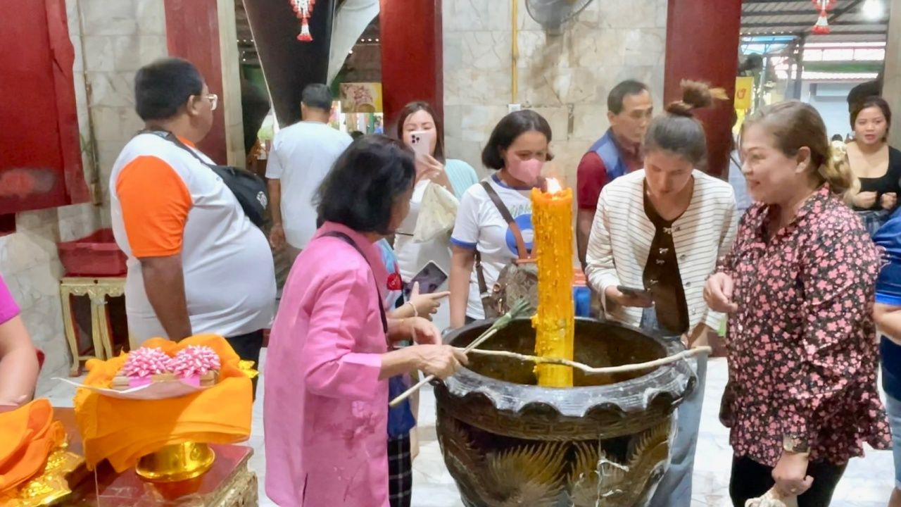 นักเสี่ยงโชคคึกคัก แห่ส่องเลขเด็ดอ่างน้ำมนต์ "หลวงพ่อปากแดง" จ.นครนายก ไปลุ้นเป็นเศรษฐีงวด 17/1/68