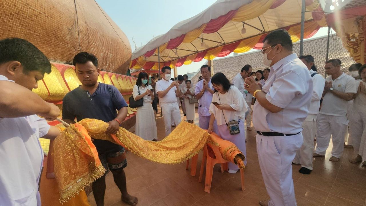คณะสายบุญจาก กทม. เดินทางมาถวายผ้าไตรจีวรห่มองค์หลวงพ่อสมหวัง คอหวยไม่พลาดส่อง "เลขเด็ด" หางประทัด 1/2/68 ลุ้นรวย