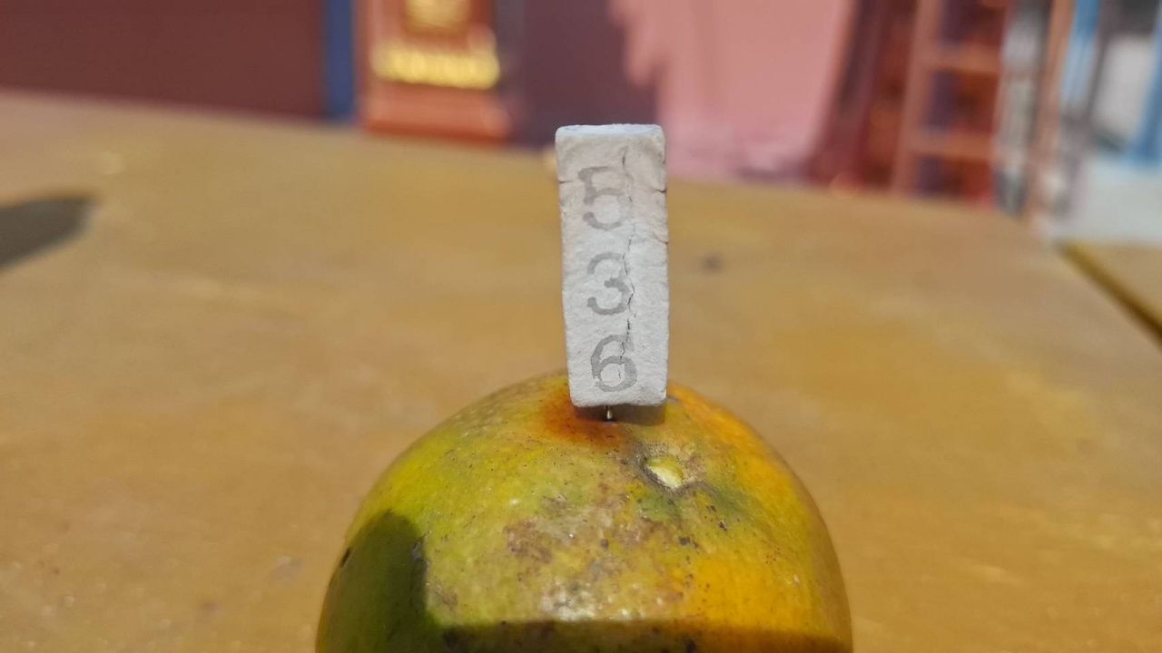ในเวลาต่อมา เจ๊สวยได้จัดเตรียมดอกไม้ธูปเทียนไปอธิษฐานต่อศาลพระภูมิเจ้าที่บริเวณหน้าบ้าน เพื่อขอโชคลาภอีกครั้งในงวดที่จะถึงนี้ โดยการจุดธูปเสี่ยงทายอธิษฐานขอโชคลาภเหมือนทุกครั้งที่ผ่านมา เมื่ออธิษฐานเสร็จ จึงได้ปักธูปไว้บนผลส้ม