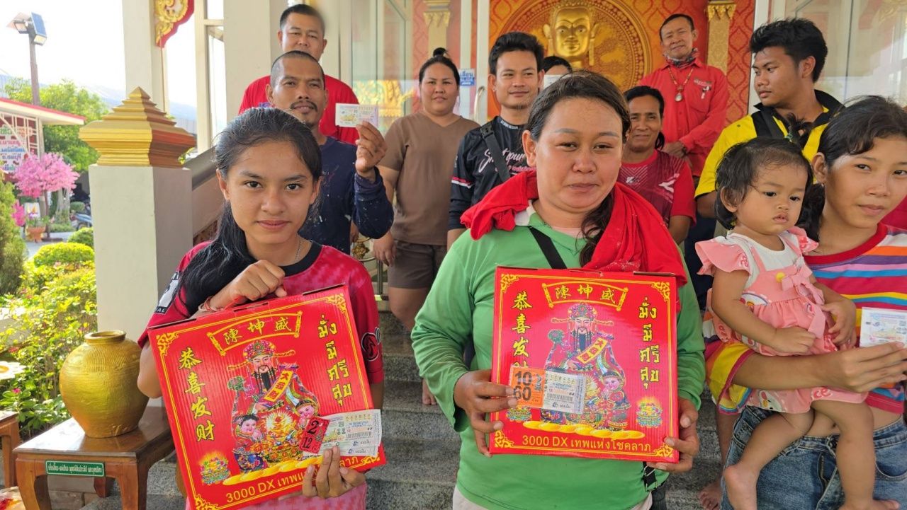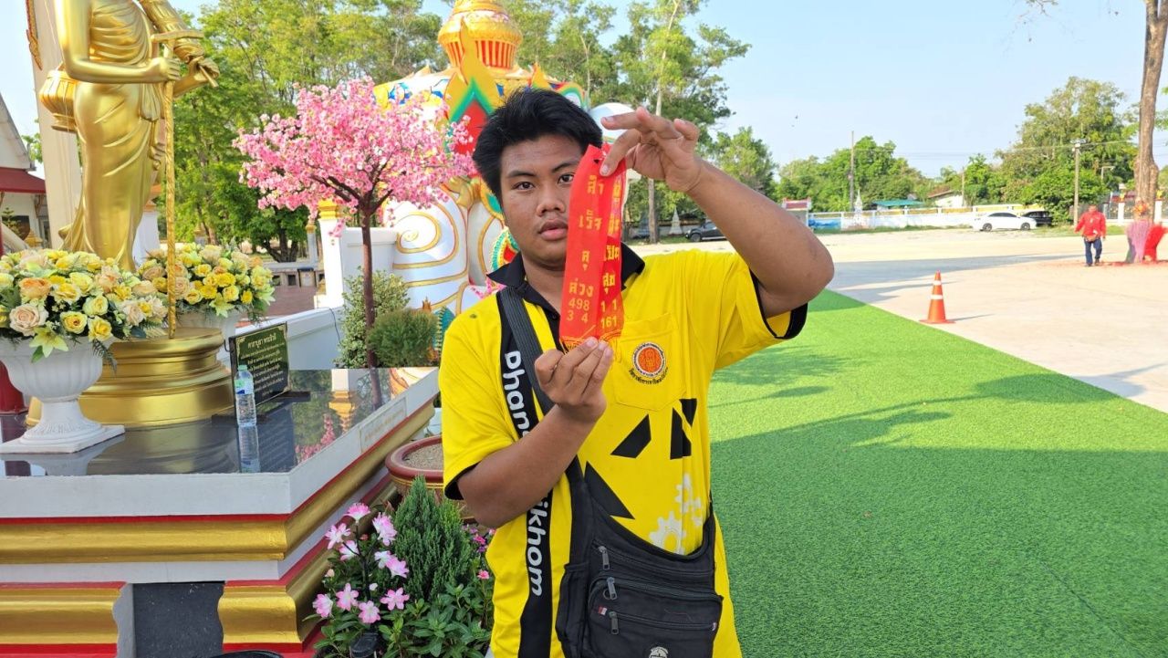 คนงานเก็บไม้ดวงเฮง หลังขอโชคลาภ "หลวงพ่อใหญ่" วัดห้วยสูบ ถูกหวยนับ 10 ใบ ด้านคอหวยไม่พลาดส่อง "เลขเด็ด" หางประทัด หวังลุ้นรวยงวด 1/4/68