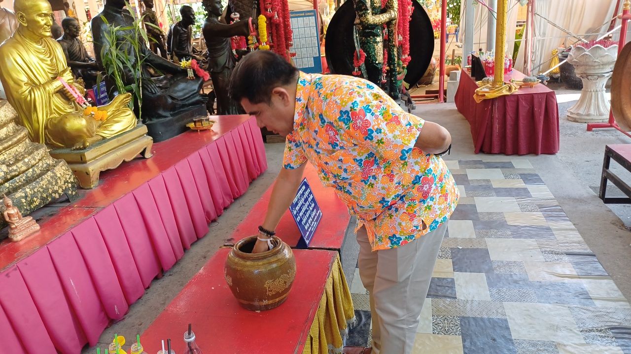 ตลกดังทำบุญขอพรหลวงพ่อแป๊ะ พร้อมขอโชค "องค์ปู่ฤาษี" วัดสว่างอารมณ์ จ.นครปฐม เสริมสิริมงคลเนื่องในวันสงกรานต์ ไม่พลาดหยิบตะข้อง "เลขเด็ด" เสี่ยงโชค