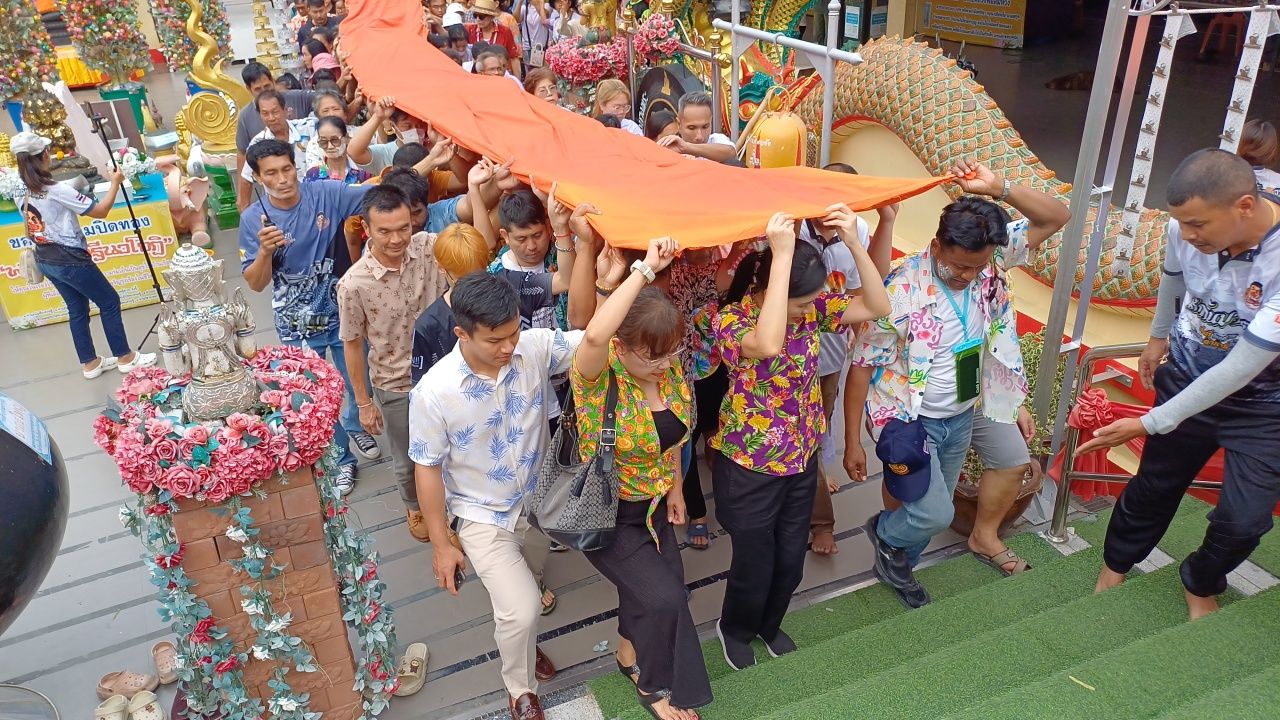 สาธุชนล้นหลาม ร่วมพิธีแห่ผ้าห่มองค์พระ "หลวงพ่อสมหวัง" ไม่พลาดส่องเลขหางประทัด หวังไปลุ้นโชค งวด 16/4/68