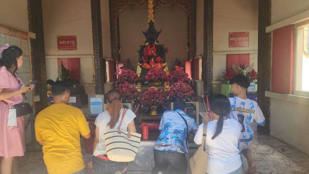 วันที่ 22 เมษายน 2568 เมื่อสายของวานนี้ ผู้สื่อข่าวรายงานมาจากวัดกลางบางพระ (หลวงพ่อสมหวัง) ต.บางพระ อ.นครชัยศรี จ.นครปฐม มาว่า สาธุชนและนักเสี่ยงโชคเดินทางมาทำบุญกราบไหว้ขอพร ขอโชคลาภที่วัดกลางบางพระกับหลวงพ่อสมหวัง พระพุทธรูปศักดิ์สิทธิ์ที่มีขนาดความสูงกว่า 30 เมตร ที่ชาวนครปฐมให้ความเคารพสักการะ สาธุชนหลั่งไหลกันมาขอพรขอโชคลาภกันจำนวนมาก บางรายเข้าร่วมทำบุญถวายที่ดิน บางรายร่วมถวายสังฆทาน จำนวนมากที่มาลงยันต์หน้าผากตามตำราของหลวงพ่อพุฒ เกจิดัง อดีตเจ้าอาวาสที่มรณภาพไปแล้ว แต่ศพของท่านไม่เน่าเปื่อย สรีระนอนอยู่ในโลงแก้วภายในศาลใหญ่หลวงพ่อพุฒ เพื่อให้สาธุชนได้มากราบไหว้บูชาเป็นสิริมงคล
