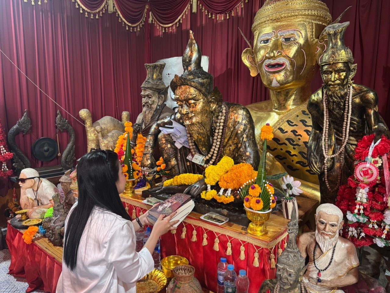 วันที่ 27 พ.ค. 68 ผู้สื่อข่าวรายงานบรรยากาศที่อาศรมฤาษีเณร ธาตุพุทธคุณ ถนนกาญจนาภิเษกวงแหวนตะวันตกหมายเลข 9 ต.โพธิ์แตง อ.บางไทร จ.พระนครศรีอยุธยา ว่ามีคนเดินทางมากราบไหว้ขอพรสิ่งศักดิ์สิทธิ์ภายในอาศรม ทั้งถวายพานฟักทองไหว้ปู่ฤาษีพรหมเมศ ถวายพานน้ำแดงไหว้กุมารทองเจ้าสัวเฮง ถวายพานกุหลาบแดงไหว้ท้าวเวสสุวรรณ 9 หน้าสูง 16 เมตร และสิ่งศักดิ์สิทธิ์ต่างๆ ภายในอาศรมตามความเชื่อ
