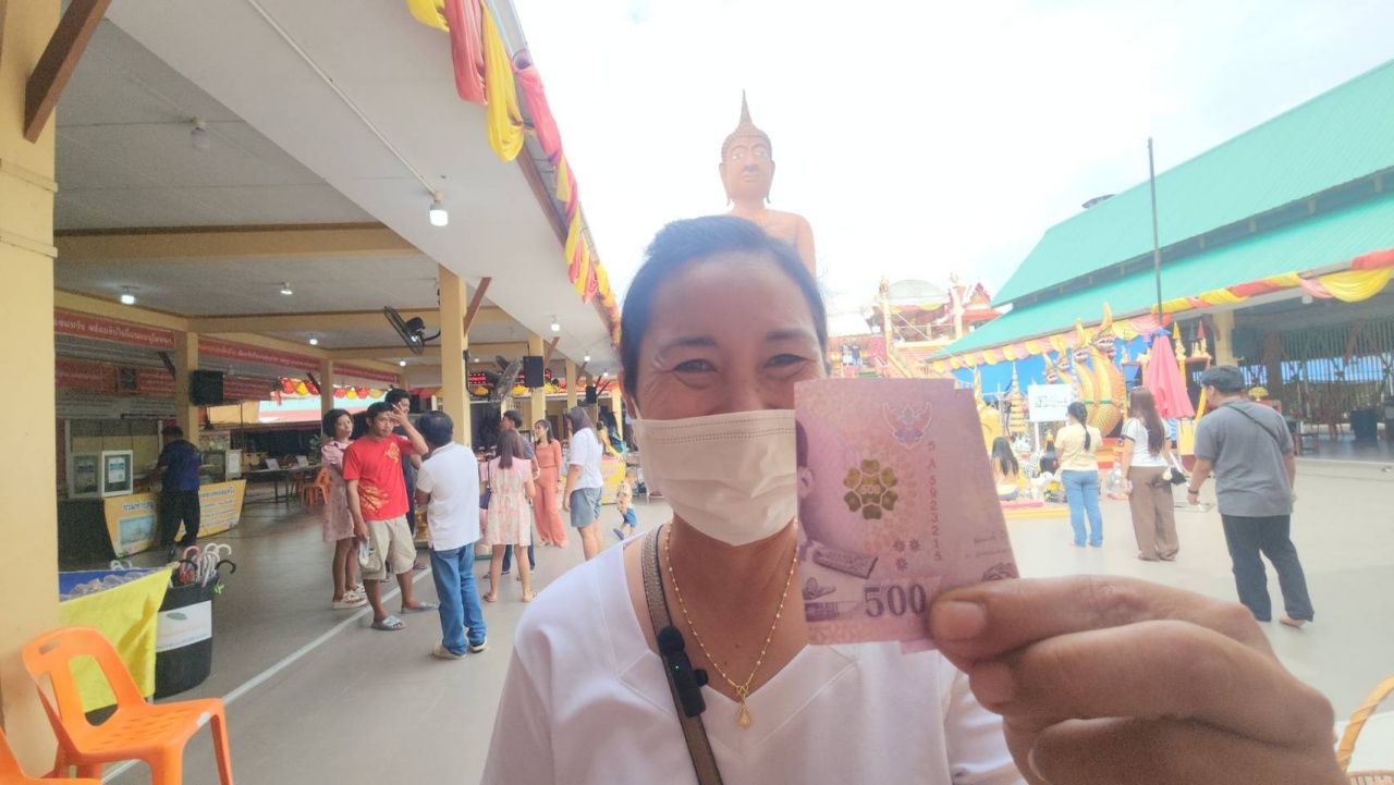 นางสายรุ้ง ยังเผยอีกว่า วันนี้จะขอทำบุญช่วยวัดซื้อที่ดิน และบริจาคให้กับมูลนิธิหลวงพ่อสมหวัง ในโครงการบรรเทาสาธารณภัย เพื่อนำช่วยเหลือผู้ประสบภัยพิบัติ โดยนำธนบัตรฉบับละ 1,000 บาท ใส่ซองถวายลงในตู้บริจาค และมอบให้มูลนิธิ ซึ่งเราอาจได้โชคก็ได้