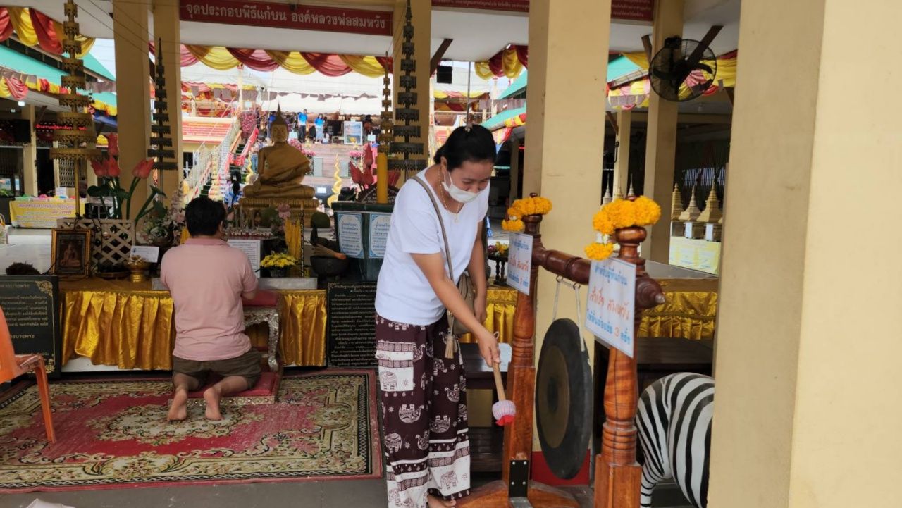 นางสาวสายรุ้ง เปิดเผยว่า เมื่อต้นปีได้บอกขายบ้านที่ดินในเขตอำเภอเมือง จังหวัดนครปฐม โดยบอกขายมานาน แต่กลับไม่มีผู้คนสนใจ จึงได้ปรึกษาครอบครัวว่าจะมาบนบานศาลกล่าวบอกกับองค์หลวงพ่อสมหวัง ขอให้ที่ดินที่บอกขายนั้นขายได้ จากนั้นเมื่อช่วงเดือนเมษายน หลังจากมาบนบานศาลกล่าวไว้ ได้เพียงแค่ 2 วัน มีคนมาสนใจติดต่อขอดูที่ดินและตกลงซื้อสำเร็จ เป็นเรื่องที่เหลือเชื่อ ในการมาขอให้ขายที่ดินครั้งนั้นได้มีการบนบานศาลกล่าวไว้ด้วยว่าหากขายสำเร็จและได้กำไรงามจะมาแก้บน วันนี้จะนำสิ่งของมาแก้บน