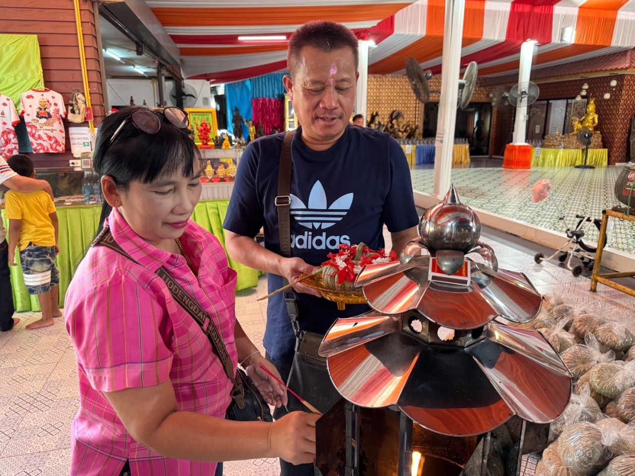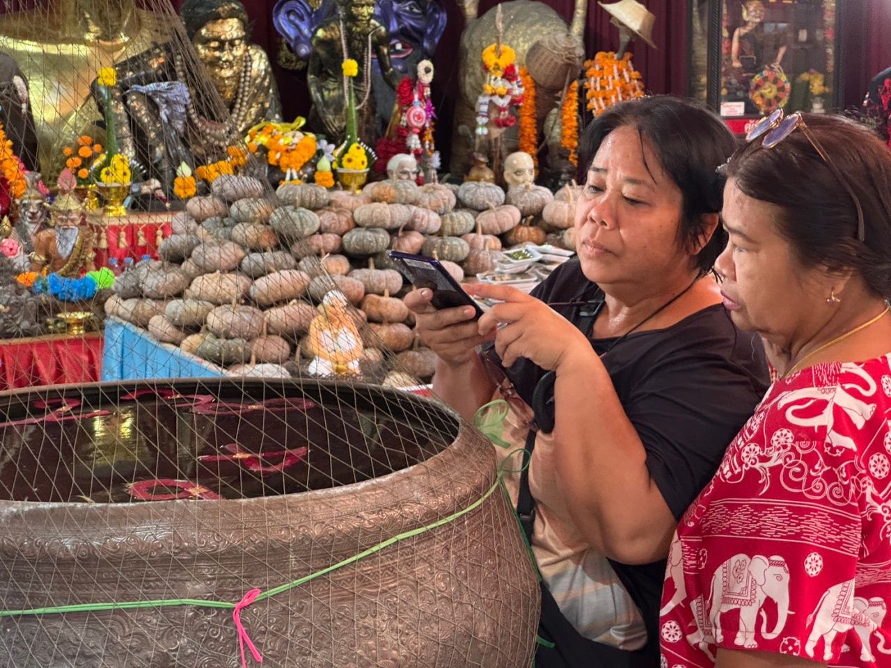 และยังได้เข้าร่วมพิธีกรรมต่างๆ กับอาจารย์ฤาษีเณร ธาตุพุทธคุณ ทั้งถวายข้าวสาร ยกพ่อแก่ ปะพรมน้ำมนต์ อาบน้ำมนต์หมื่นวัดและยังได้ส่องเลขอ่างน้ำมนต์บนศาลาบุญช่วยเพื่อนำไปเสี่ยงโชค โดยตัวเลขจะลอยวนจับกันเรียกว่าเทวะบันดาล เลขทั้งหมดได้แก่ 2 3 4 7 8 9