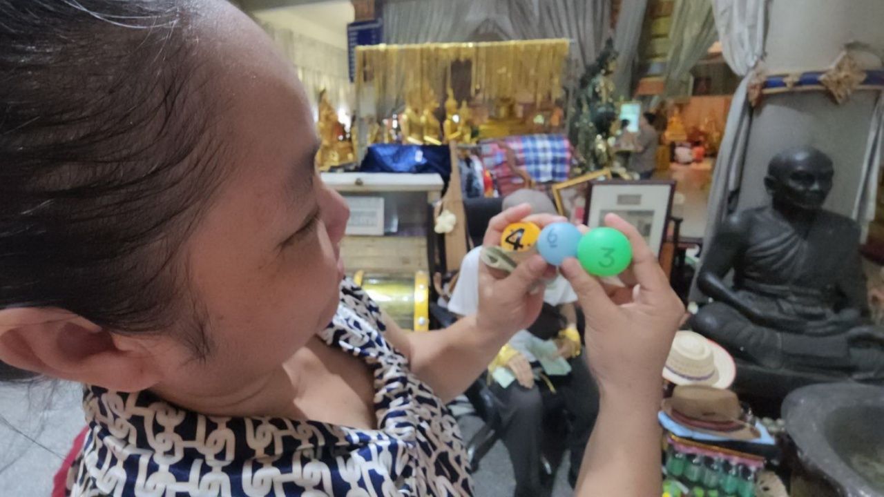 จากนั้นก็ทำการล้วงไข่ในตะข้องขึ้นมา 3 ลูก ปรากฏว่าได้เลข 329 หยิบโชว์ให้ญาติดู พร้อมกับถ่ายภาพโทรศัพท์ไว้กันลืม ทุกคนต่างยกมือท่วมหัวขอให้ได้โชค แล้วจะกลับมาอีกพร้อมกับบนไว้ว่าหากได้โชคใหญ่จะนำของมาแก้บน